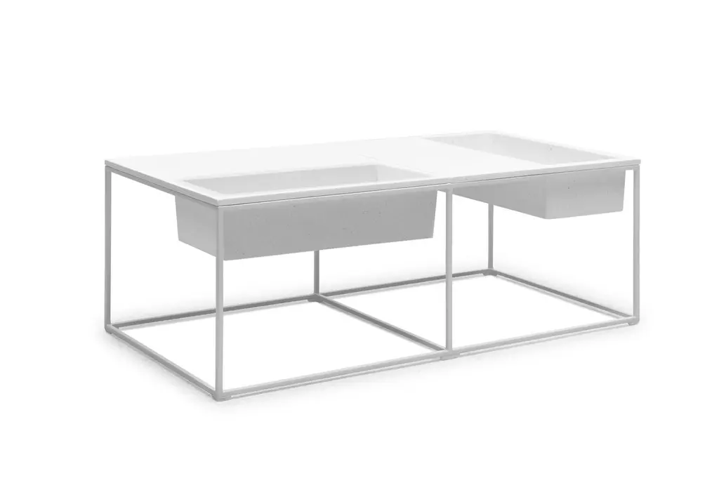 Kaja coffee table by Kenneth CobonpueMaterials: Steel, stonecast. Dimensions: 40cm x 80 cm x H 31 cmTransform your living room into an indoor garden with Kaja. Made of naturally crushed stones and a welded powder-coated metal base, this collection seamlessly marries clean, simple lines with the organic beauty of nature.Designer's BiographyKenneth Cobonpue is a multi-awarded furniture designer and manufacturer from Cebu, Philippines. His passage to design began in 1987, studying Industrial Design at the Pratt Institute in New York. While completing his studies, he apprenticed for a leather and wood workshop near Florence, Italy. He went on to study Furniture Marketing and Production at the Export-Akademie Baden-Württemberg in Reutlingen, Germany, under a private and state scholarship program, and subsequently worked in Bielefeld and Munich.Kenneth returned home to Cebu in 1996 to manage Interior Crafts of the Islands, Inc., a furniture design and manufacturing company founded by his mother Betty Cobonpue in 1972. Discovering that modern design could have a new face using natural fibers and materials, Kenneth created pieces of functional art, offering an alternative to the Western definition of modern design. Today, the Kennethcobonpue brand has become known globally for its unique designs and extensive roster of clientele, including Hollywood celebrities and members of royalty.With his masterful way of integrating nature, traditional craft and innovative technologies, designer and creative director Kenneth Cobonpue has earned international awards and recognition for his creative, organic, and expressive pieces. Working closely with some of the world’s leading designers, from household names to emerging talents, Kenneth has been pushing the envelope for design in the Philippines and sharing his vision to a global audience. Awards to his credit include five Japan Good Design Awards, the grand prize at Singapore International Design Competition, the Design for Asia Award of Hong Kong, the American Society of Interior Design Top Pick selection and the French Coup de Coeur award. Several of his designs were selected for several editions of the International Design Yearbook published in London and New York. Phaidon’s book entitled “& FORK” underscores Kenneth’s position as a leader of a new movement incorporating new technologies with crafts. In 2007, TIME magazine called him “rattan’s first virtuoso”. Kenneth was named the Designer of the Year in the first edition of Maison et Objet Asia held in March 2014 in Singapore.Kenneth reveals new work each year in the design shows from Milan to New York, and he speaks regularly about Southeast Asian design all over the world. He has also appeared in European television and in countless international magazines and newspapers around the world. Various Cobonpue designs have also appeared in full-length feature films and television, such as Oceans 13 and CSI.