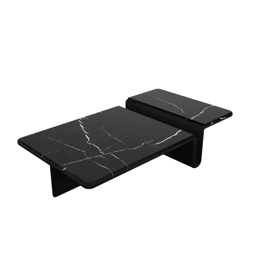 Kanyon is an authentic coffee table which combines functionality and sculptural posture with simplicity, beautiful materials and exquisite craftsmanship. Inspired by the topographic beauty of canyon structures, the design translates the basic topological features of canyons to a minimal and unique design language. Functionality is integral to its sculptural posture, where the U profiled gap between different table surfaces serves as a convenient and aesthetic space to store books, newspapers and magazines and the 2 level table top allows the user to arrange objects based on use, ease of access or aesthetic appeal.Produced by skilled craftsmen, Kanyon coffee table provides customization according to user needs through alternatives in veneers, colors and dimensions. As a result, Kanyon offers a unique expression that blends with different interiors while making its statement as an artful centerpiece.Material: Black marble, oak and oak veneerThe marble is sealed with a stone sealer (Idea Gold Bellinzoni).Dimensions: W 160 cm, D 90 cm, H 37 cmCustomization is possible in dimensions and materials (oak, smoked oak, black stained oak, walnut, lacquer).Can be produced with different stone and marble types upon request.