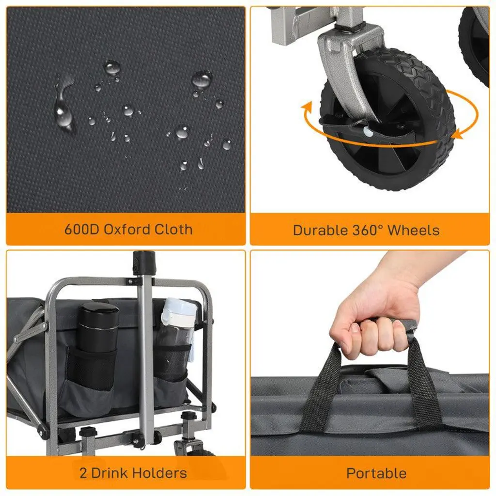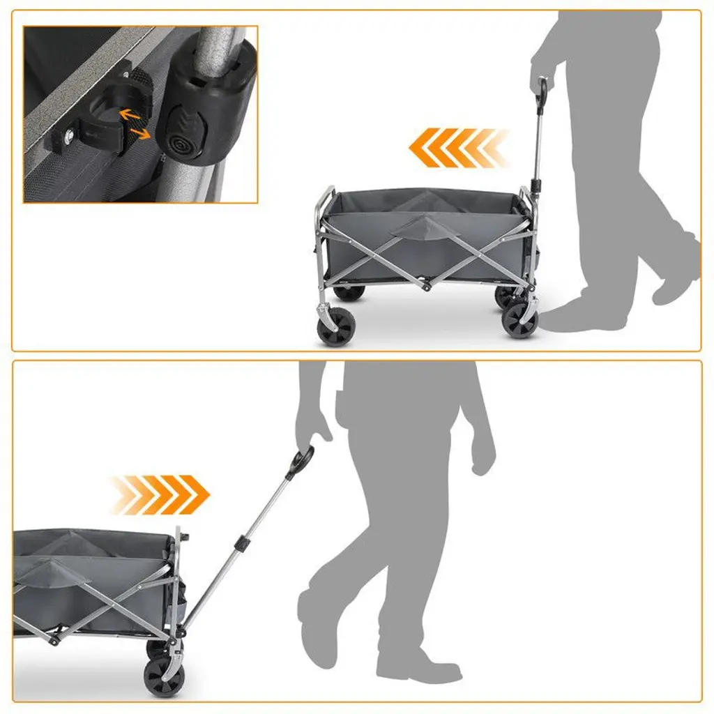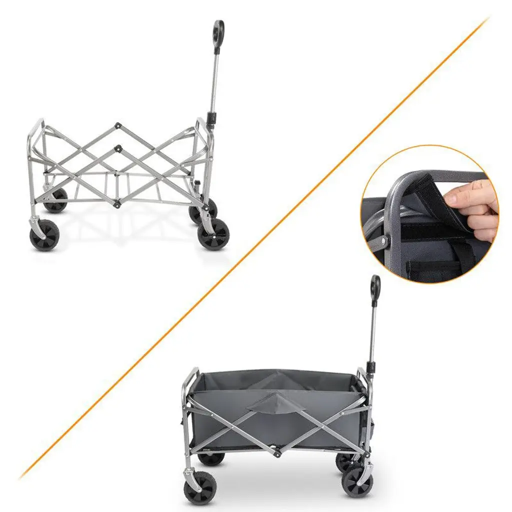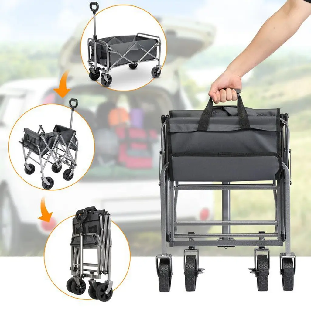 No matter the scenario, this utility collapsible wagon cart can handle it. From toys and groceries to everything in between, go with the folding outdoor cart and lighten your load. This one beach wagon stores easily in your trunk, garage, or closet, ensuring easy transport. Folding utility wagons are used in a wide range of applications, such as outdoor activities, beaches, gardens, parks, camping, or shopping to make your life more convenient.