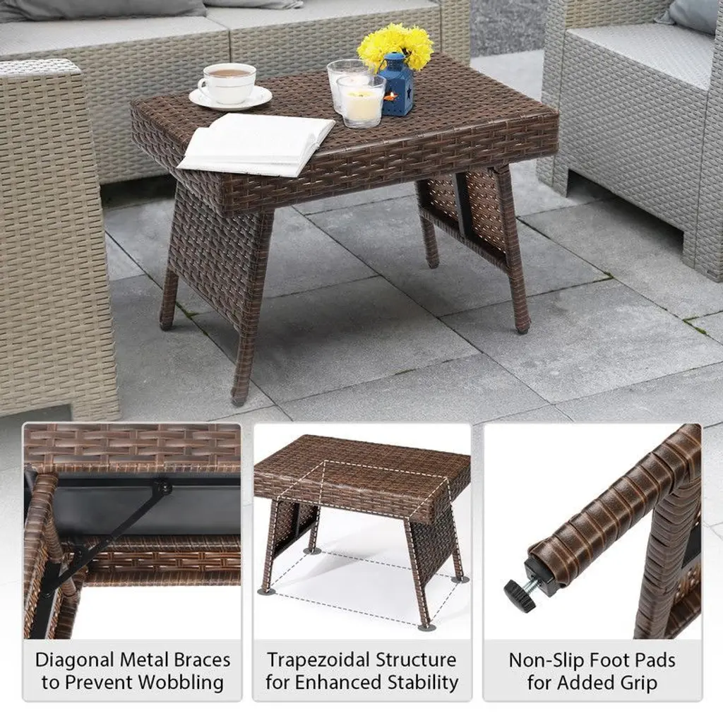 Karl Home |Patio Wicker Folding Side Table Coffee Table