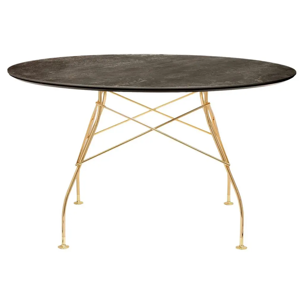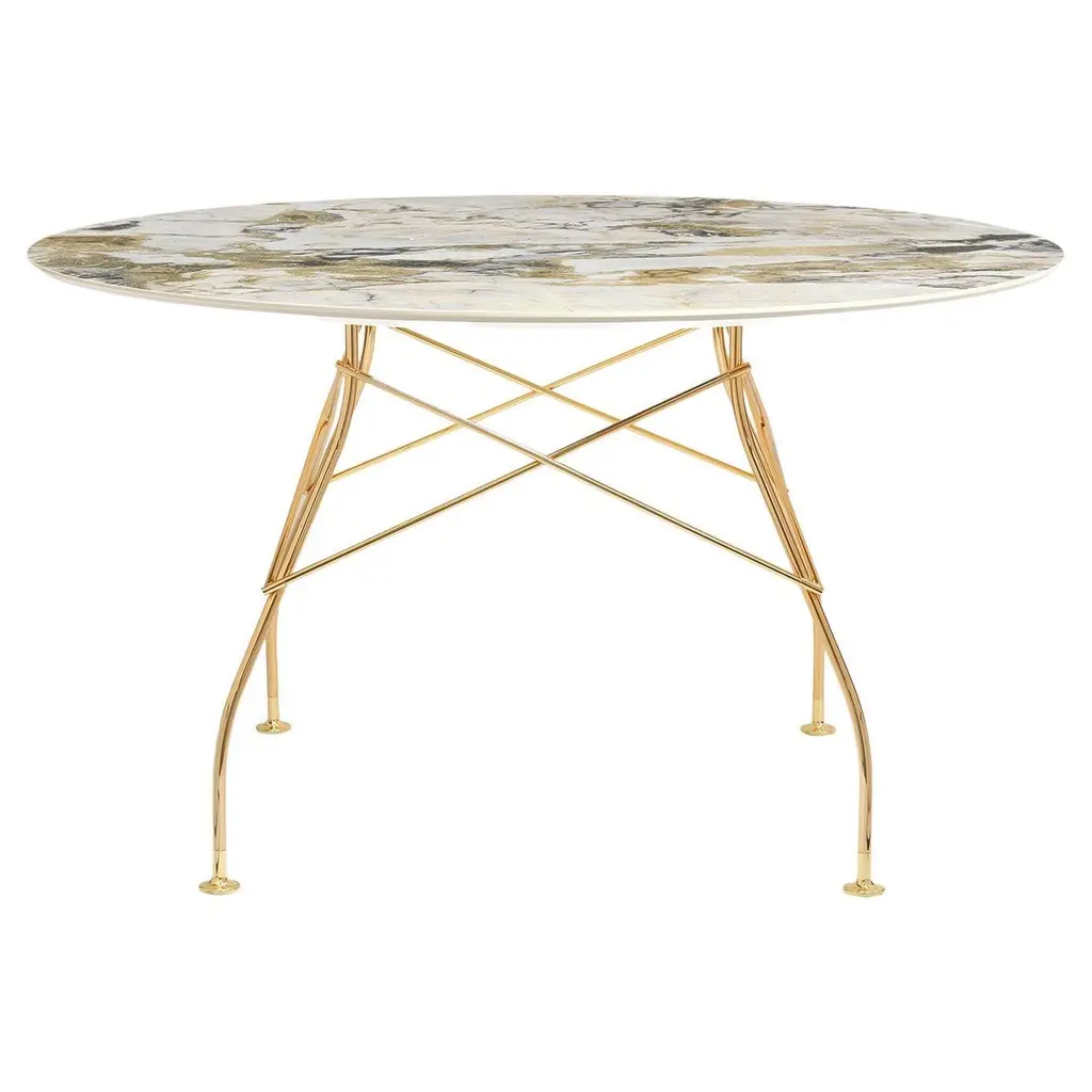 Kartell Glossy Table In Gold / White By Antonio Citterio