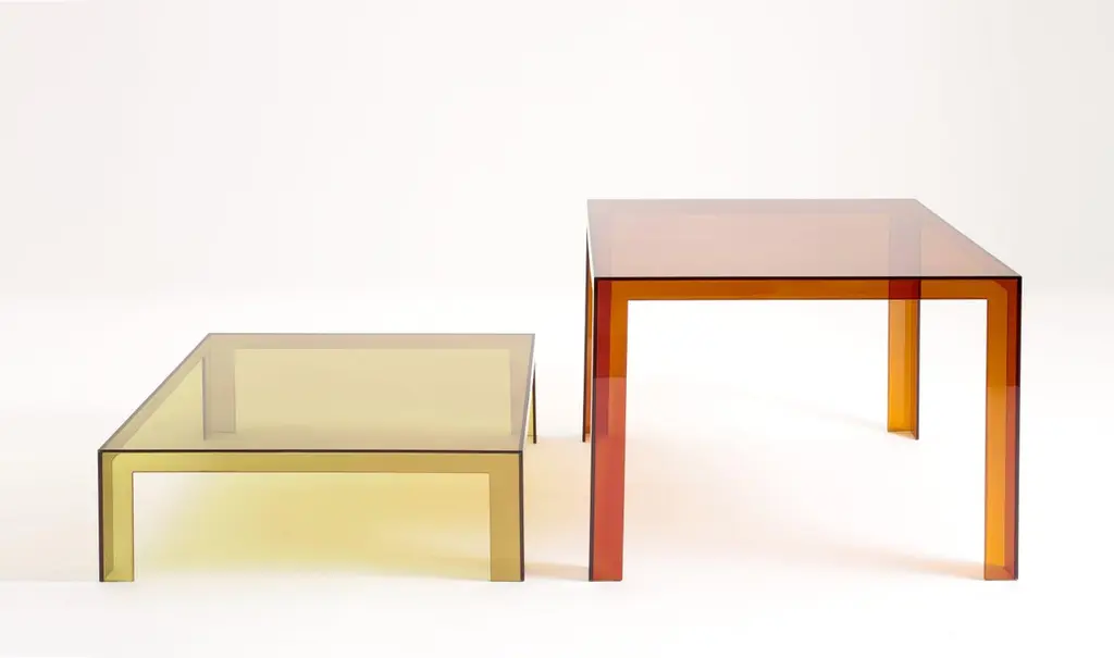 Invisible Table designed by Tokujin Yoshioka combines lightness and solidity, grace and elegance and practicality and style. Its simplicity and purity of form makes it adaptable to any environment. Its sophisticated palette of colours ranging from teal to seaweed green and from amber to smoke adds a note of originality and sparkle to the piece.Made of: Polycarbonate. Outdoor use.