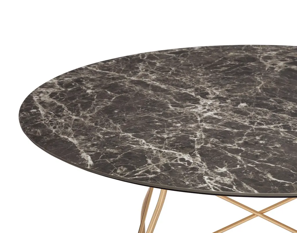 Kartell Round Glossy Table In Brown Emperador Marble By Antonio Citterio