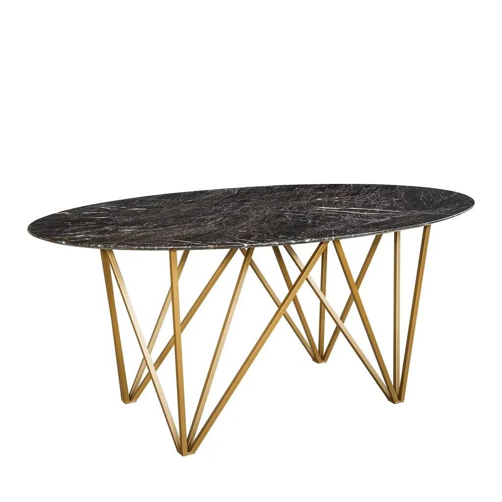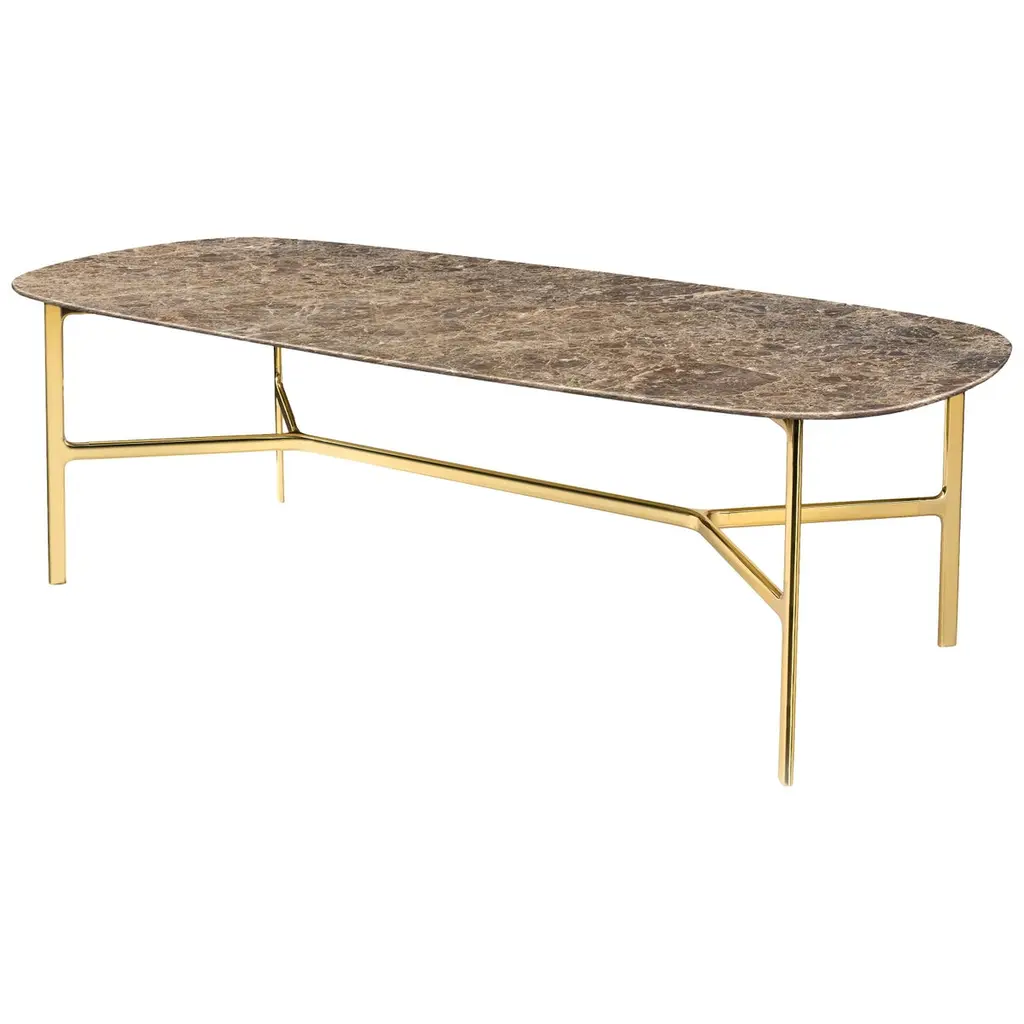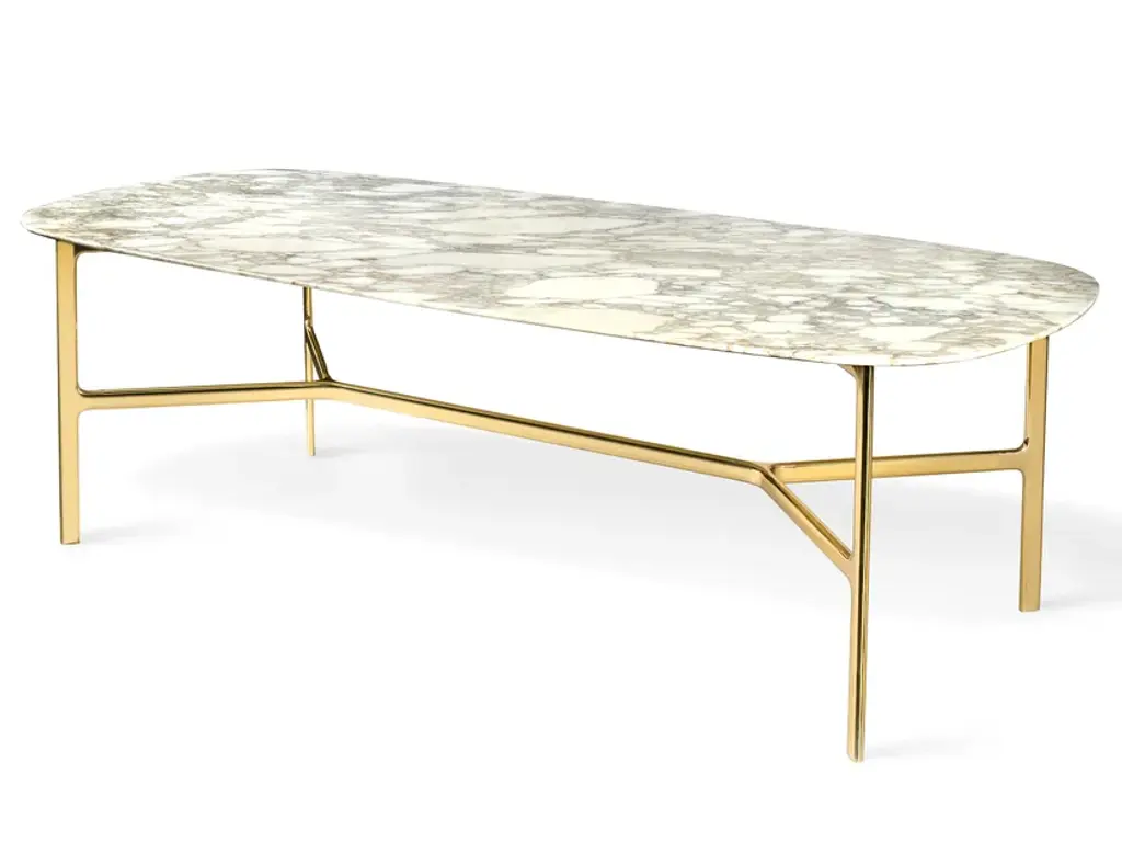 The TopTop table line is distinguished by its leg which can be either a round or square transparent section with a multi-faceted surface and metal core.