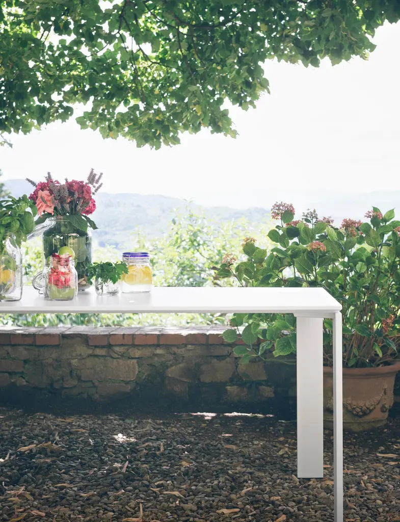 This functional and refined table also has a strict geometric design. Thanks to the elegant design solution, the position of the slim table top allows for the convenient positioning of drawers or storage furnishings for computer hardware. They can be placed side-by-side to form office workstations. Four is available with a painted steel body and a 2.5 cm thick table top in stratified laminate.Made of: Scratch-resistant laminate top or painted steel base. Dimensions: 62.25" L x 31" W x 28" H.