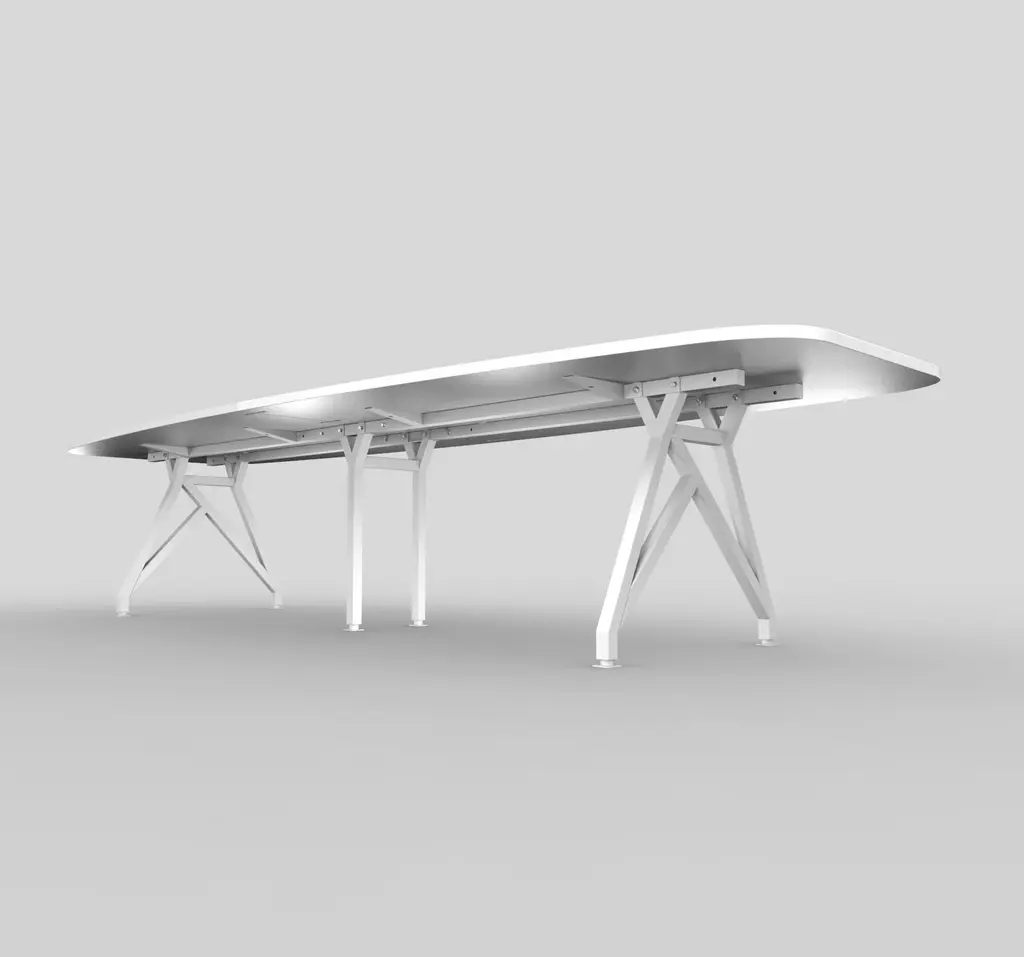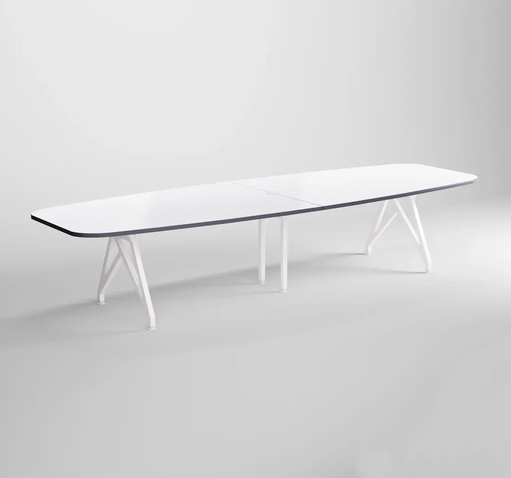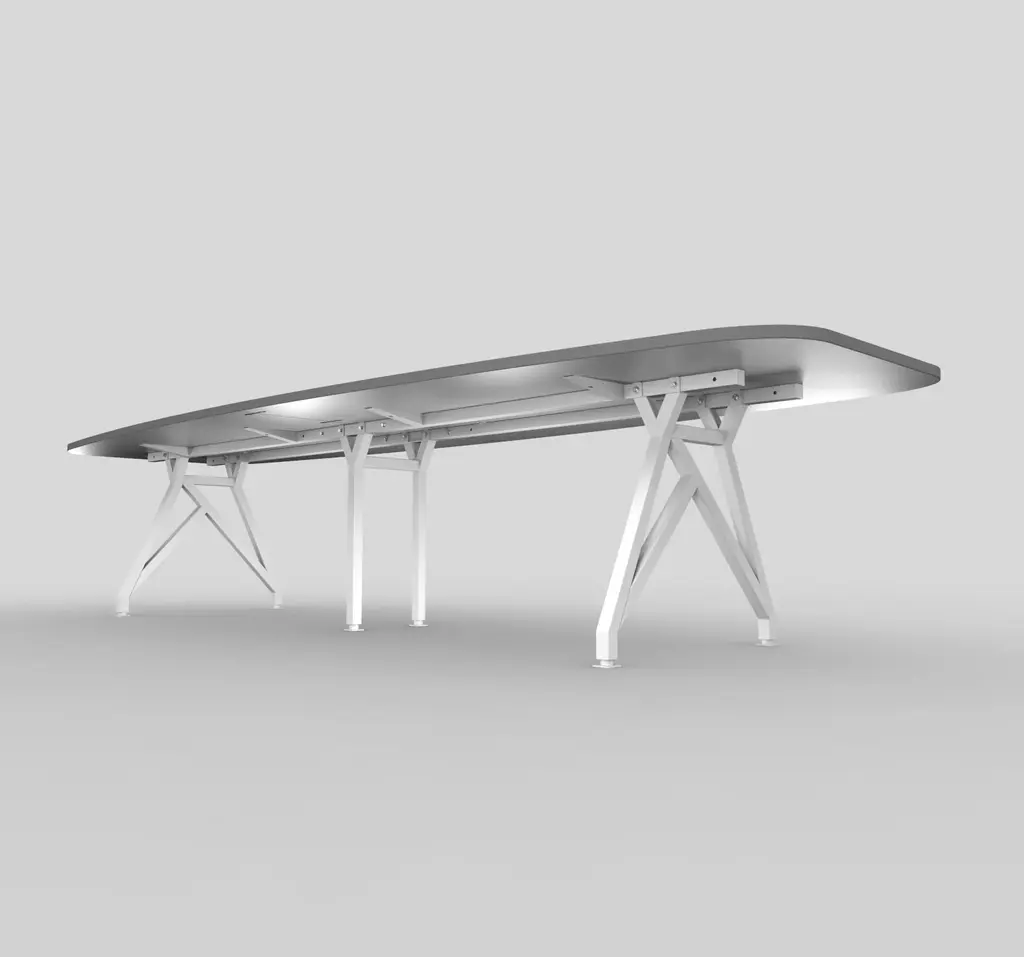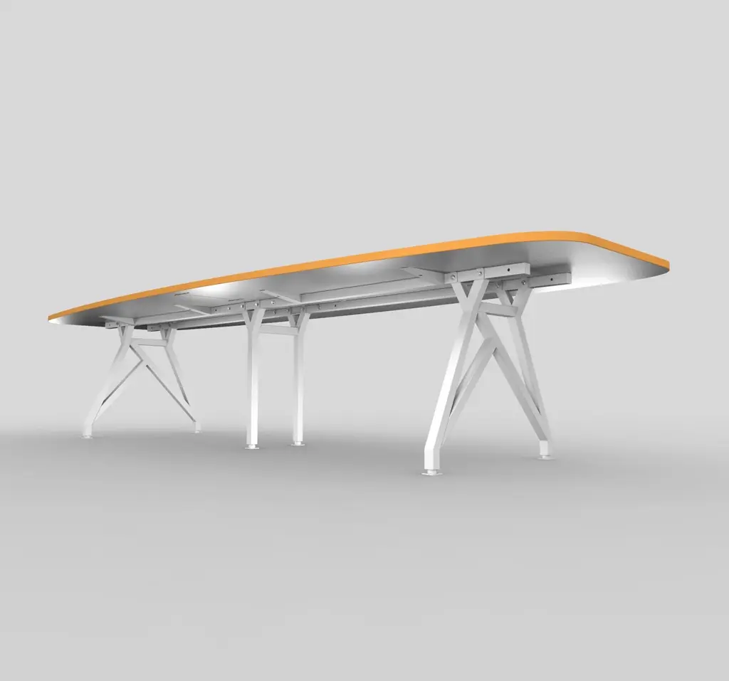Let's do some quick word associations. Meeting. Talking. Conference. Goals. Journey. Travelling to something. Forging across the ocean. Boat. We're all in this boat together. KAYAK! We're not sure if that's how Scale 1:1 came up with the name for the Kayak conference table, but we think it makes sense. This boat shaped conference table gets folks together, circled up, and ready to attack whatever issues your company is tackling that day. Choose a 10 or 12' sized top, and get ready to start boldly sailing where no company has gone before! Paddles and sails not included. Kayak Conference Table is for the meeting times when the collaboration energy feels like everyone is in the same boat! Kayak Conference Tables’ unique boat-like shape allows clear line-of-site, making communication with colleagues easier. Ideal for encouraging collaboration and increasing productivity while giving the team a sense of equality – we’re all in the same boat! Kayak’s tough top and edge banding along with a sturdy base ensure long-lasting quality and protection from bumps and surface scratches. Available in a variety of finishes and with options for integrating power, get ready to set sail with Kayak. Features