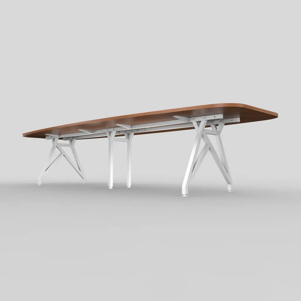 Let's do some quick word associations. Meeting. Talking. Conference. Goals. Journey. Travelling to something. Forging across the ocean. Boat. We're all in this boat together. KAYAK! We're not sure if that's how Scale 1:1 came up with the name for the Kayak conference table, but we think it makes sense. This boat shaped conference table gets folks together, circled up, and ready to attack whatever issues your company is tackling that day. Choose a 10 or 12' sized top, and get ready to start boldly sailing where no company has gone before! Paddles and sails not included. Kayak Conference Table is for the meeting times when the collaboration energy feels like everyone is in the same boat! Kayak Conference Tables’ unique boat-like shape allows clear line-of-site, making communication with colleagues easier. Ideal for encouraging collaboration and increasing productivity while giving the team a sense of equality – we’re all in the same boat! Kayak’s tough top and edge banding along with a sturdy base ensure long-lasting quality and protection from bumps and surface scratches. Available in a variety of finishes and with options for integrating power, get ready to set sail with Kayak. Features