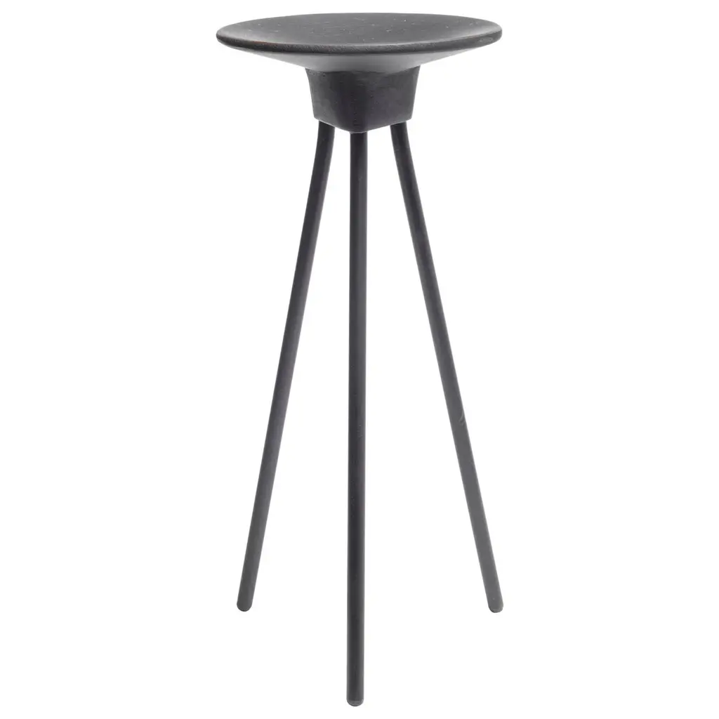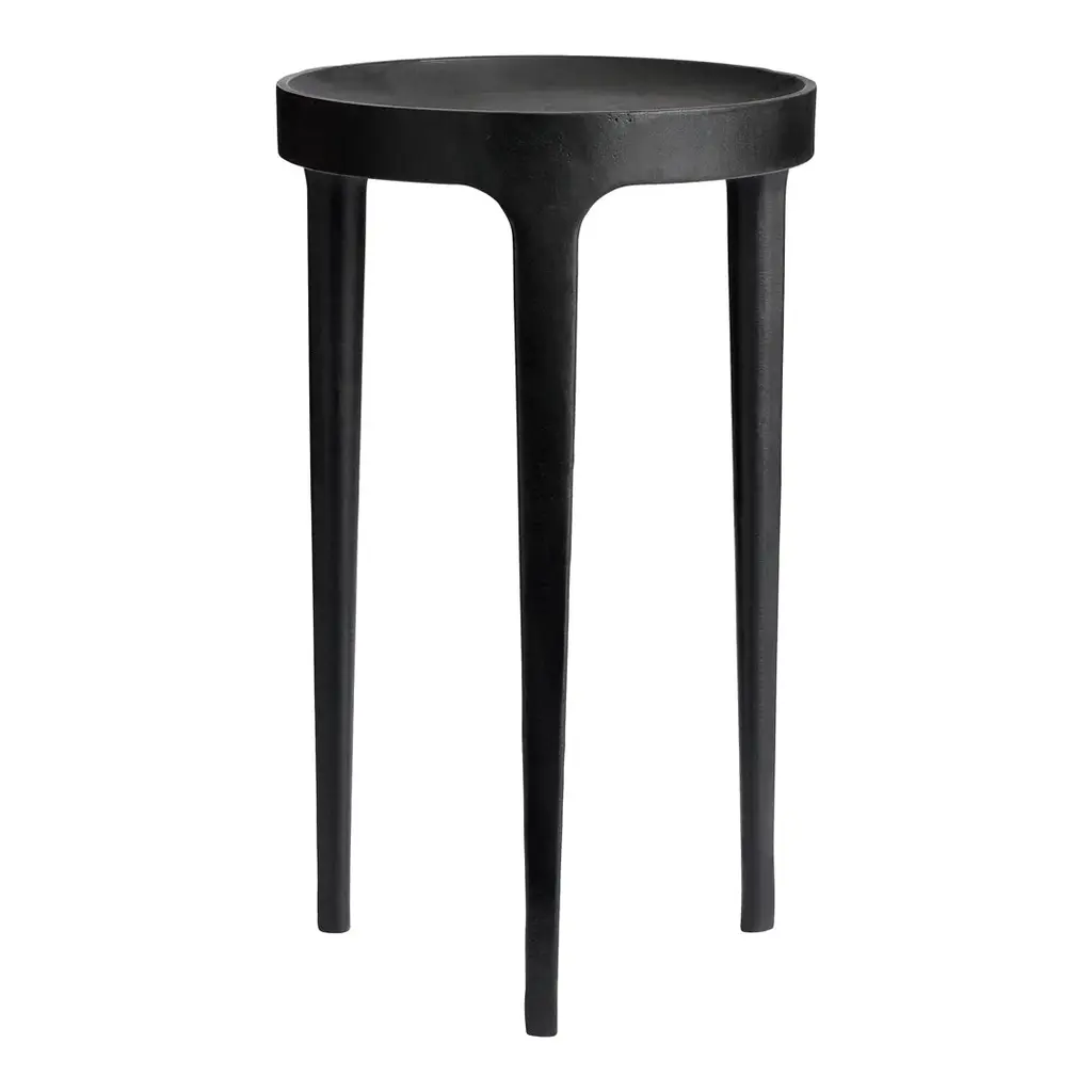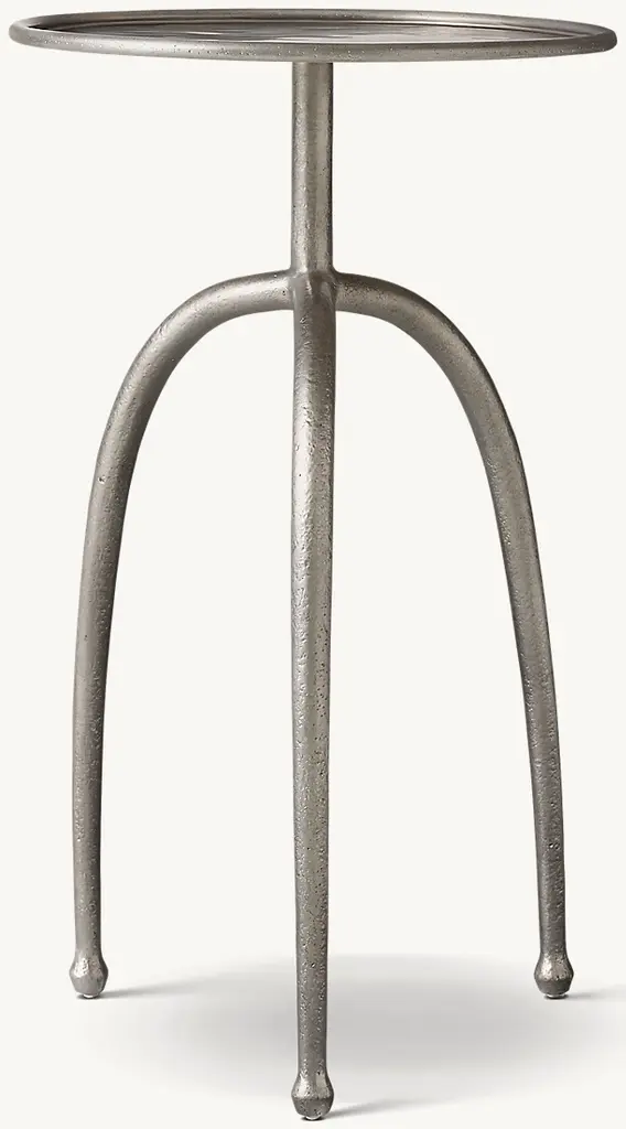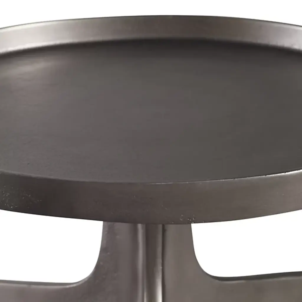 Reminiscent of antique furnishings, the Kenna Table from Uttermost garners one’s attention while quietly alone or supporting one’s objects. The modern design plays with shape and line like a refined sculpture. An aluminum construction helps the piece achieve a slender profile outlined in tight curves. The triangulating base looks airy and takes up minimal floor space. A circular top rests gracefully on top with a raised lip to keep spills and essential objects contained.