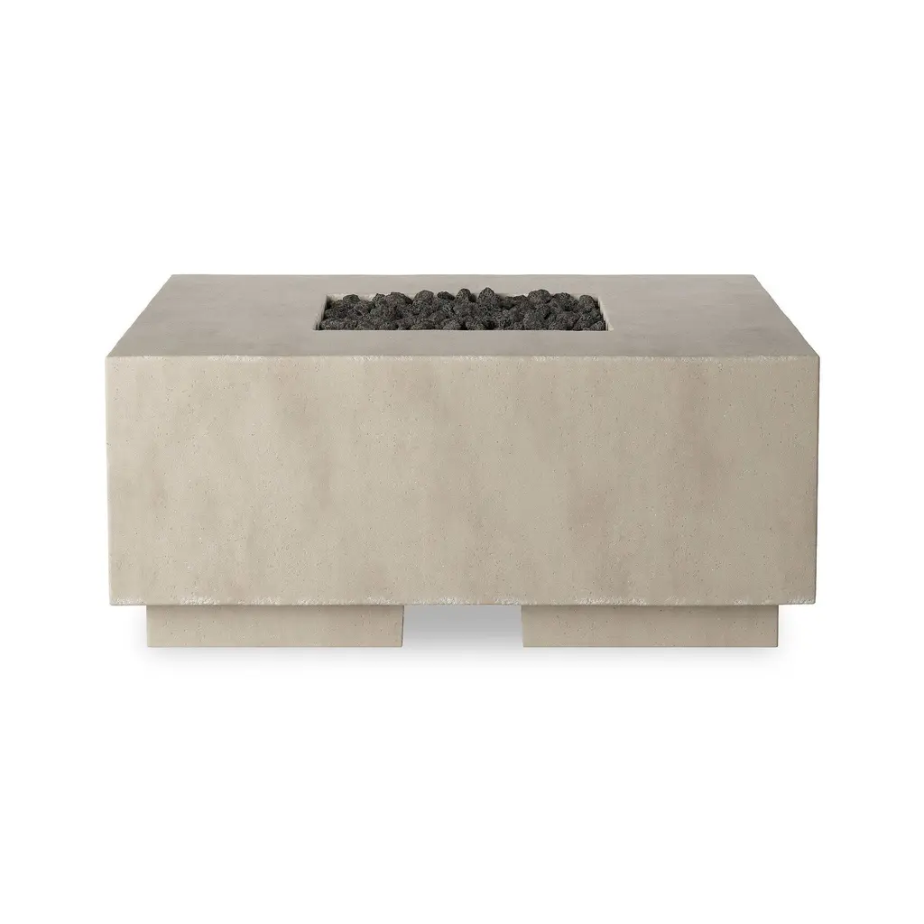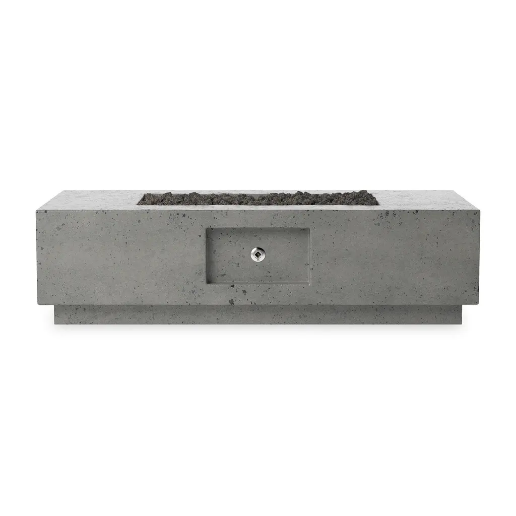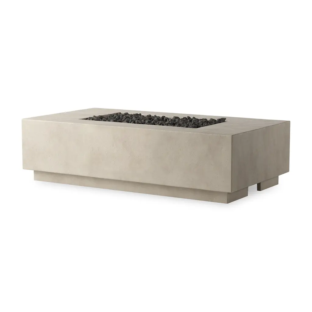 The Kenton Outdoor Fire Table displays refined material expression through its architectural presence and chromatic restraint. Crafted from glass-reinforced concrete, its monolithic silhouette creates a commanding focal point with distinguished simplicity. The surface's natural finishing process yields sophisticated tonal variations in pewter and dark grey—a testament to material authenticity and technical precision. Central lavastones complete the composition with textural contrast while maintaining chromatic harmony. Highlights