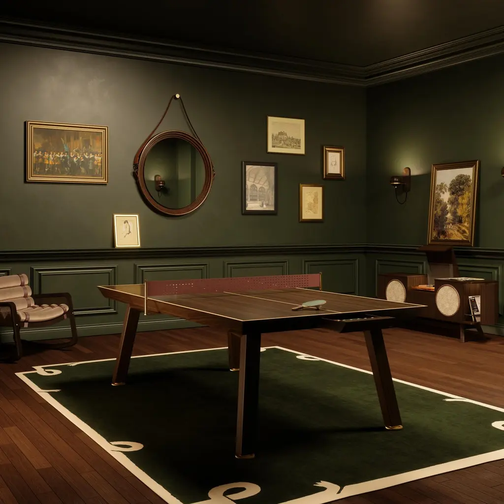 George Keppel, 6th Earl of Albemarle, was a prominent British diplomat and military officer during the 19th century. He hailed from an aristocratic family and inherited the title of Earl of Albemarle in 1851. Handcrafted with meticulous attention to detail, the Keppel Ping Pong Table is crafted in walnut wood, featuring details in oak, offering it a classy touch. The striking Keppel Ping-Pong Table is a pinnacle of elegance in the realm of sporting equipment. This exceptional table boasts a nubuck leather net with intricate perforations. Adding to its appeal, the Keppel Ping-Pong Table incorporates three drawers that are ideal for holding ten balls and two rackets complete with an additional net, ensuring a seamless gaming experience. Keppel proudly stands as the newest addition to the expanding collection of game tables by Wood Tailors, epitomizing both sophistication and leisure.Note: Game accessories are not included.