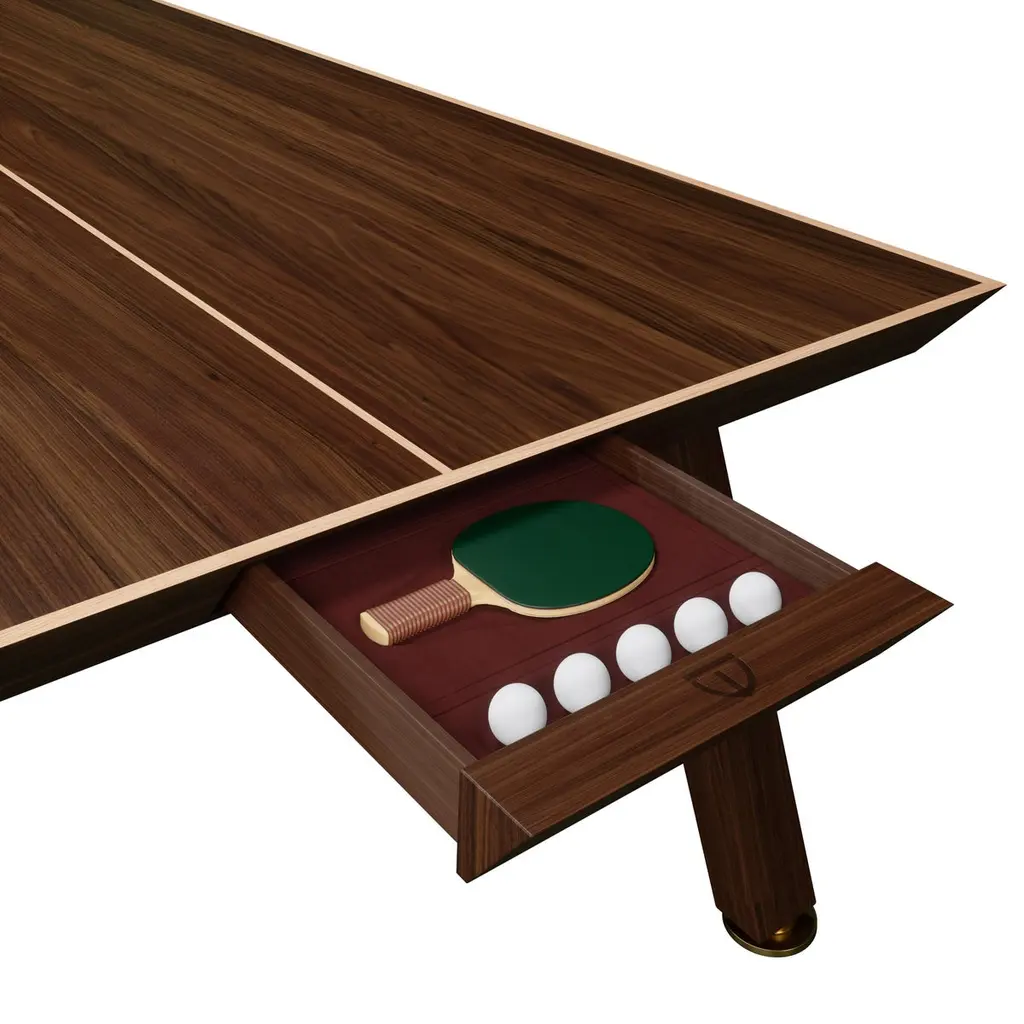 Keppel Ping Pong Table Walnut Wood Leather Handmade In Portugal By Wood Tailors