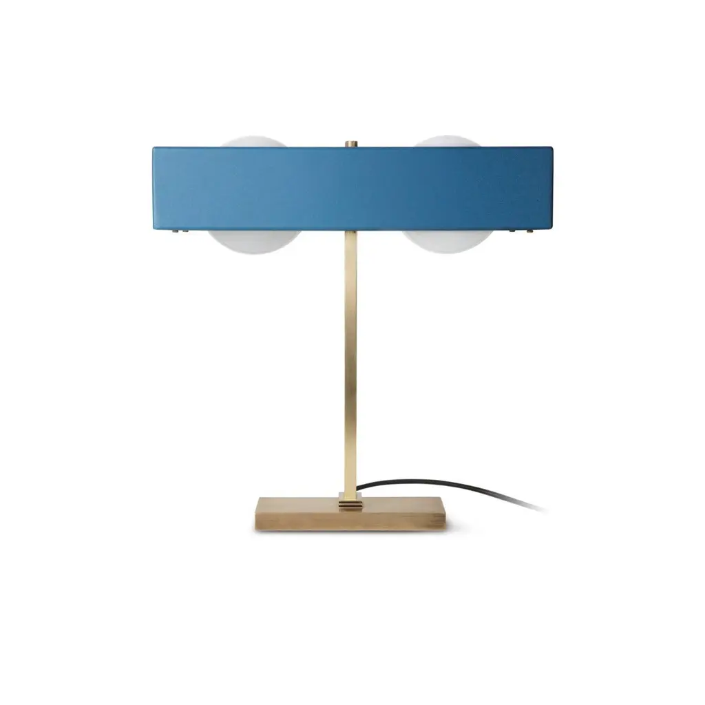 Kernel table light - blue by Bert Frank.Dimensions: 41.5 x 40 x 24 cm.Materials: Brass, steel.Brushed brass lacquered as standard, custom finishes available.When Adam Yeats and Robbie Llewellyn founded Bert Frank in 2013 it was a meeting of minds and the start of a collaborative creative partnership with engineering at the core.Both men share a love of design and deep respect for the heritage of British engineering. Both wanted to create high-end products that would Stand the test of time and fly in the face of throwaway consumerism. The partnership has resulted in award-winning lighting and accessories that fuse the integrity of the small-scale workshop with timeless aesthetics reimagined for today.The two men work closely together from concept to end product. Robbie’s imagination and occasional flights of fancy are informed by Adam’s understanding of engineering principles and fabrication techniques. Equally, Adam's designs are often the starting point for a collection. In that sense Bert Frank is a true creative collaboration. As a result, every designed is honed to perfection, every detail carefully considered.