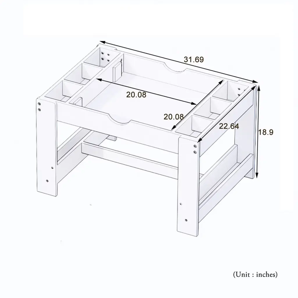 Kids 2 In 1 Play Table, Modern Activity Learning Table With 6 Storage Compartments Compatible With Building Block, Game Furniture