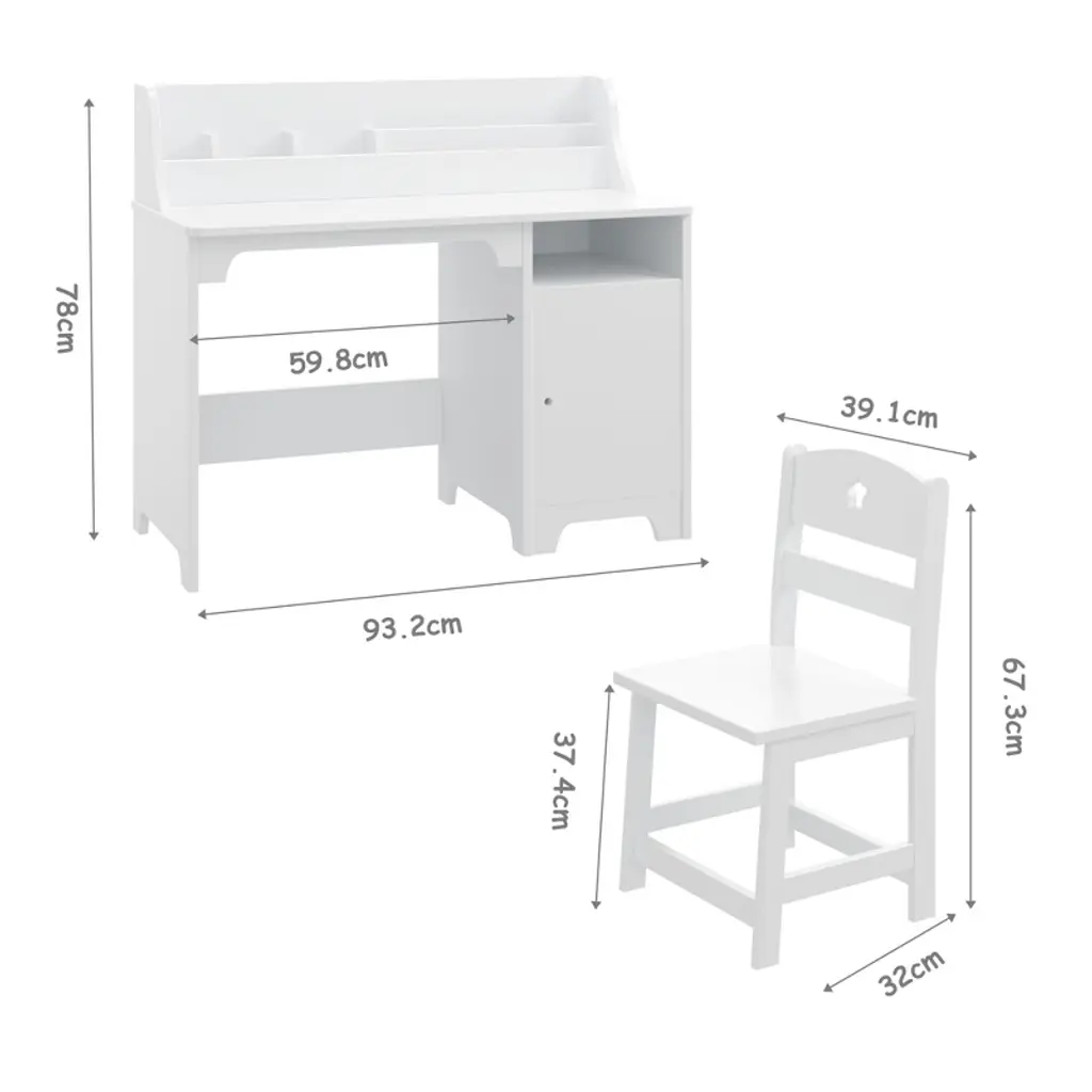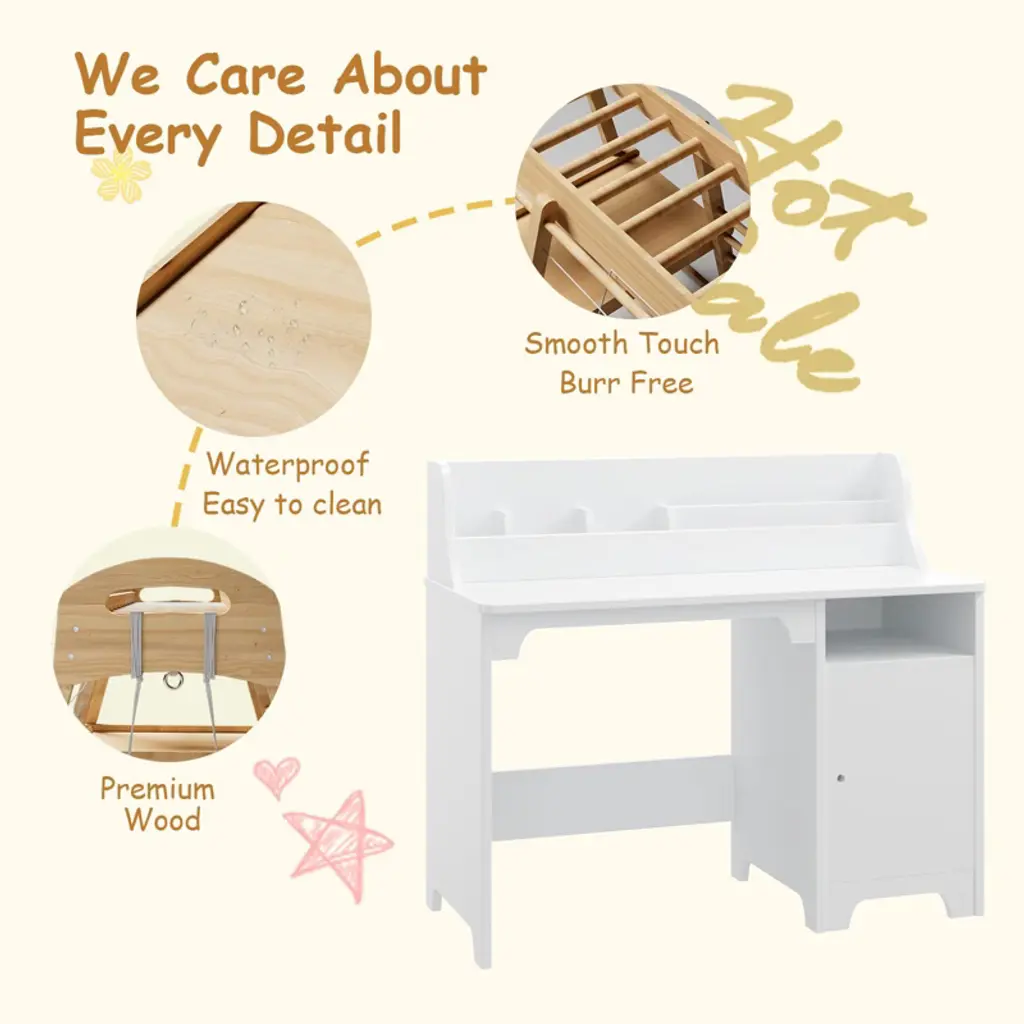 Kids Desk & Chair With Hutch, Study Desk For Boys & Girls, Storage Cabinet, Wooden Study Table, Student Writing Desk & Computer Workstation