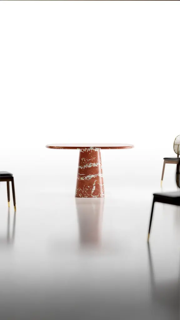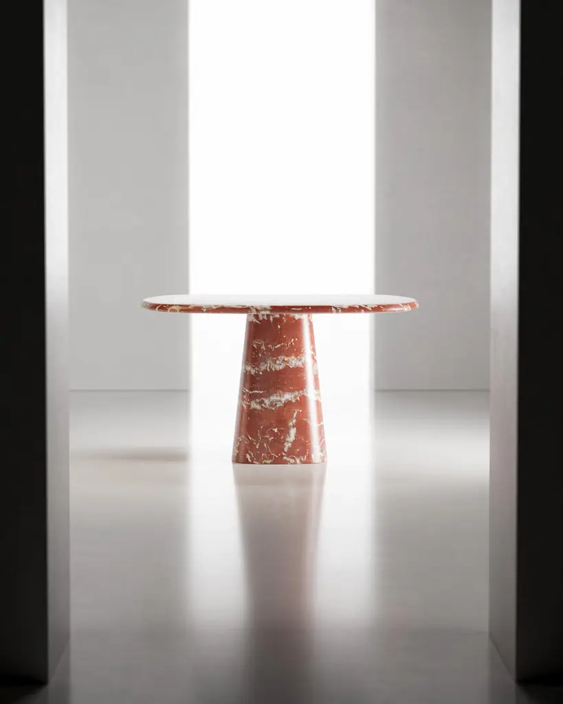 Kilknos Wedge Table by Marmi SerafiniMaterials: Kilknos marble.Dimensions: D 130 x H 75 cmOther marbles available (prices may vary): Kilknos, Travertino Silver, Rosso Francia, Calacatta Macchia Vecchia.Marmi Serafini is located in a small city named Chiampo, internationally well known for its marble production.It's origins stem from Mr. Bruno Fortunato's passion for marble which was then passed on to his two sons, Alessandro ad Luca, who eventually took over.Marmi Serafini has, with the passing of time, transformed into one of the most innovative marble factories, producing extremely design-driven products and objects.
