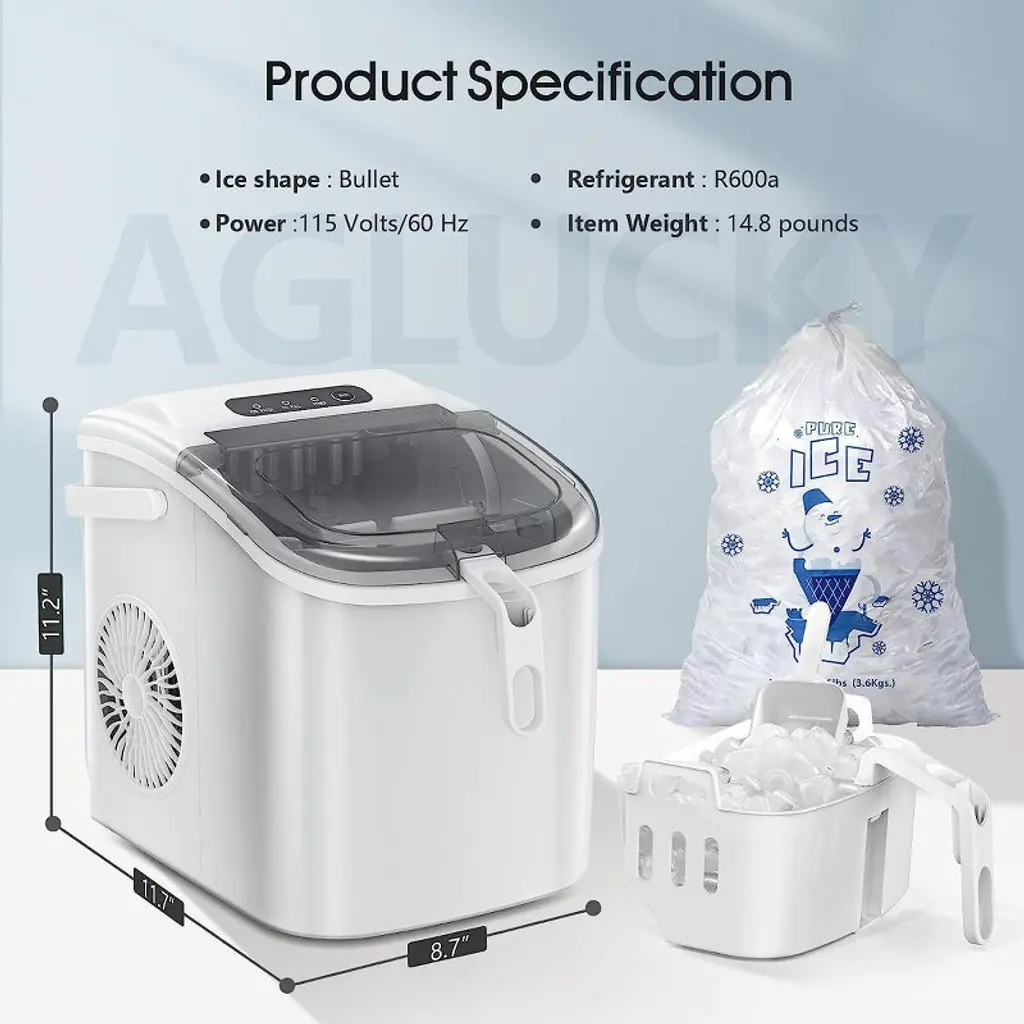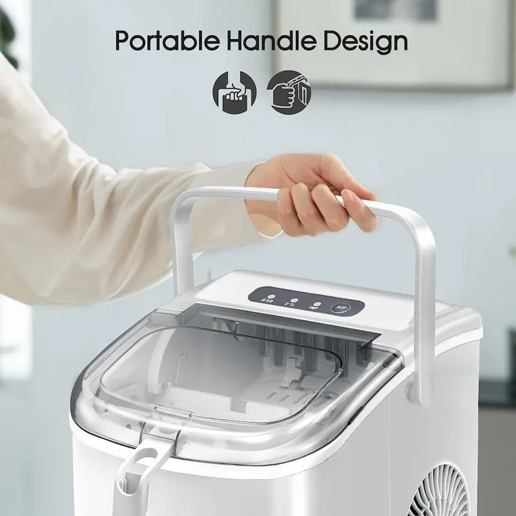 The portable countertop ice maker is the easiest and perfect way to bring ice into your home. Equipped with a high efficiency R600A compressor, this ice maker is capable of making ice quickly, with each round taking 6-12 minutes to make 9 pieces of Half-Cube-shaped ice per cycle, making up to 26LB of ice in a day. It will be the perfect addition to your kitchen. The large window allows you to keep the ice cool while checking on the production. Featuring with portable yet compact design, this premium ice maker machine is perfect for home, office, parties.