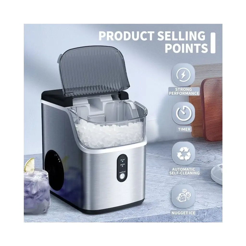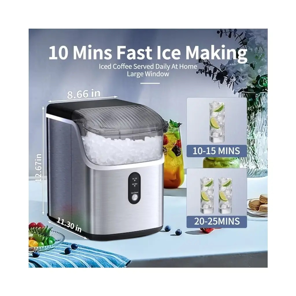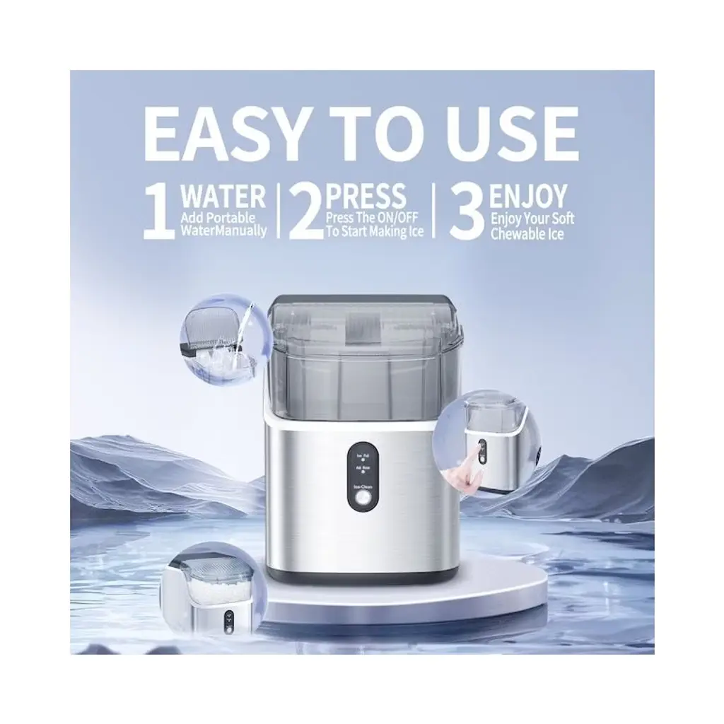 Kismile Nugget Ice Maker 33-lbs. Ice Per Day Countertop Or Portable Nugget Ice Machine ( Silver Stainless Steel )