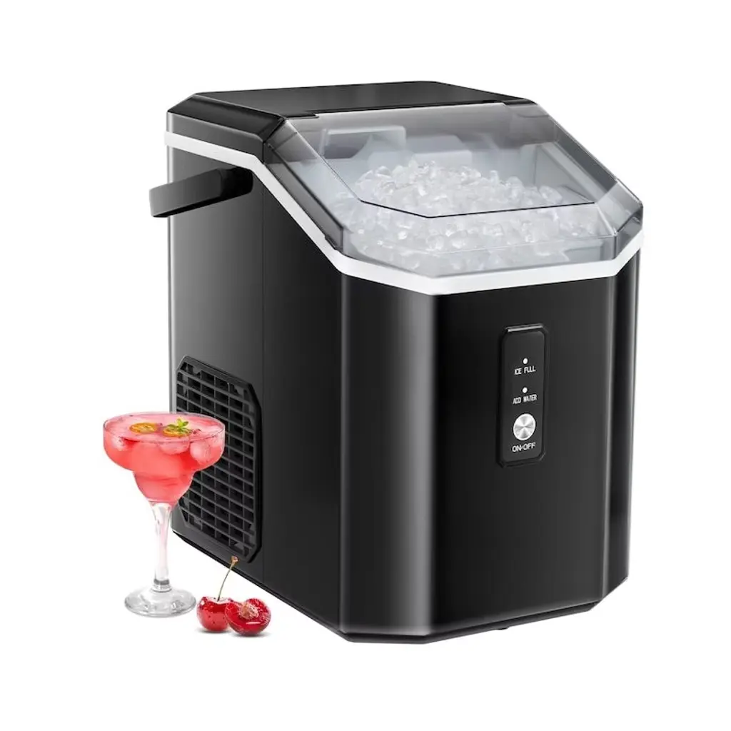 33-lbs/ 24 hours portable countertop nugget ice maker has a large ice production capacity and quick speed ice making performance, can produce ice cubes within 10minutes, and it only takes a little time to get the ice cubes, to meet your ice needs for parties, camping, coffee shops, and offices. Comes with a water tank with a capacity of 1.1L, only need one click key, start the ice maker, then the ice cubes are done. This nugget ice maker has a superior ice storage with a capacity of 1.2L, you can store ice cubes briefly in the ice basket, but we recommend that you transfer the prepared ice cubes to the freezer. The automatic cleaning function design will reduce your household chores burden. Press and hold the inches on/off inches button for 5 seconds to start automatic cleaning. There also is a transparent window at the top, so you can directly see the ice-making process without opening the lid. Our led countertop indicator will remind you to remove the ice when the ice maker basket is full, and notify you when the ice maker is in the stage of water shortage. Say goodbye to the upset of lack of ice and join in your gathering!