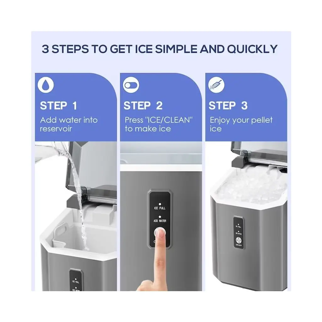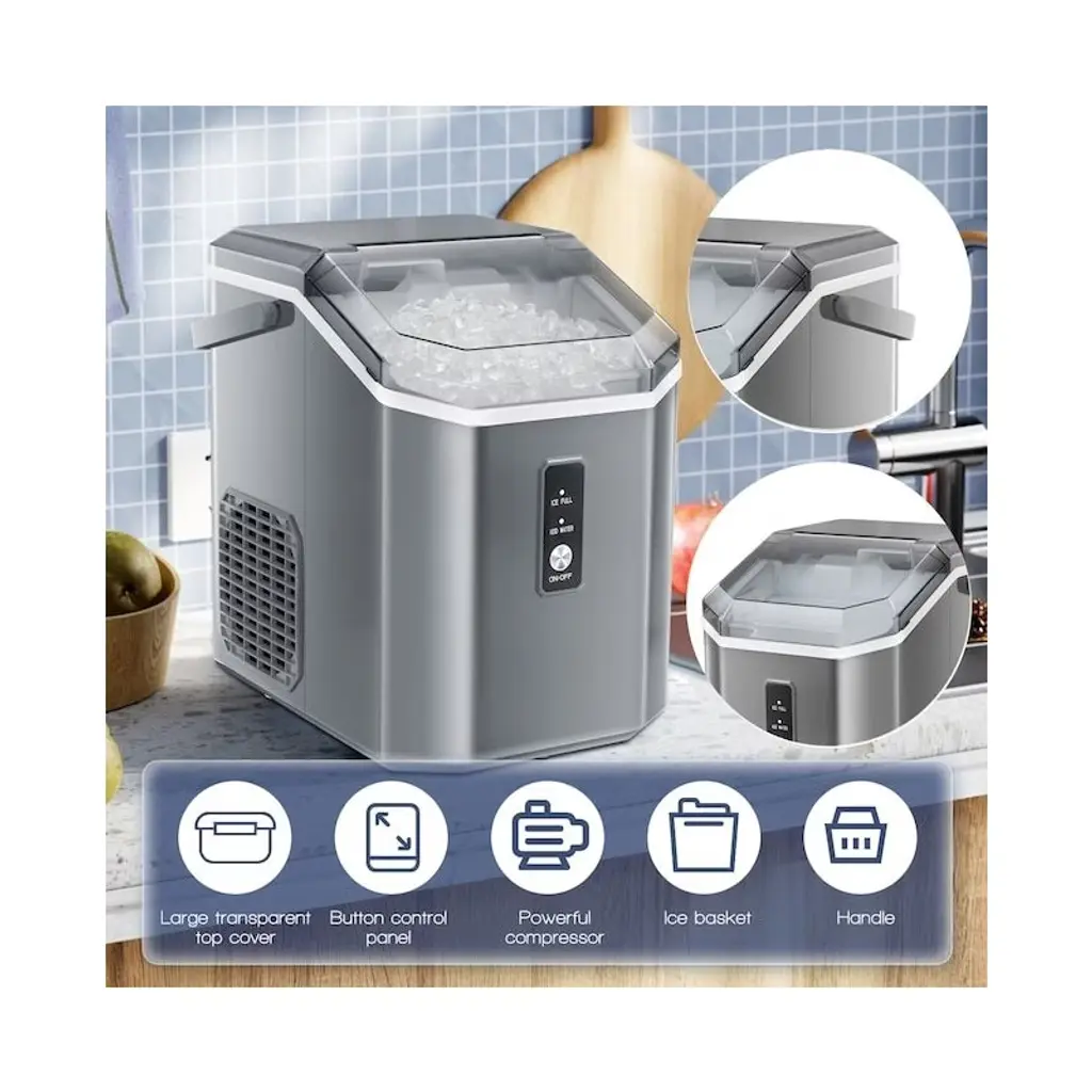 Kismile Nugget Ice Maker 33 Lbs. Ice Per Day Countertop Or Portable Pebble Ice Maker( Grey )