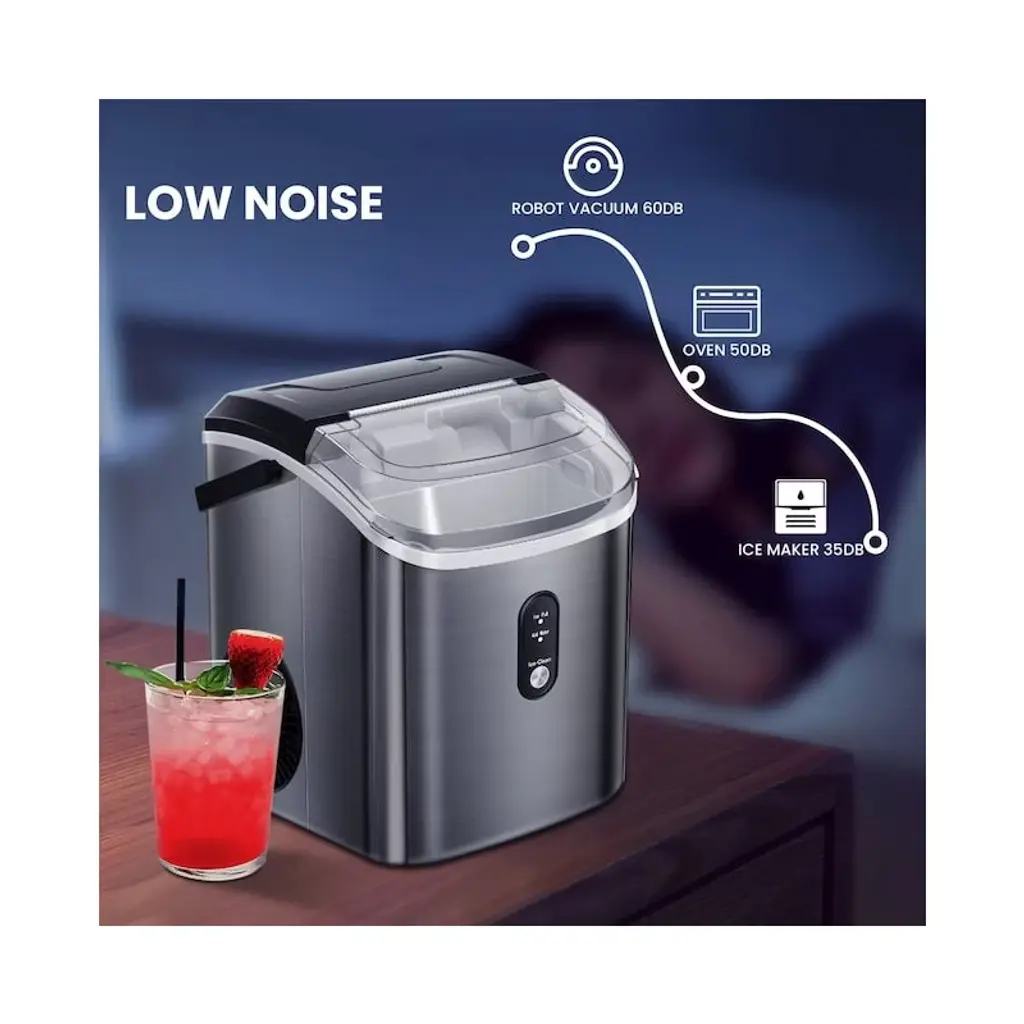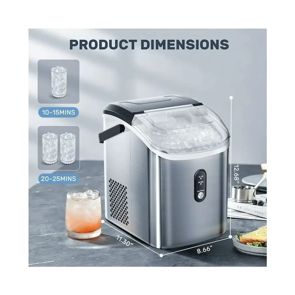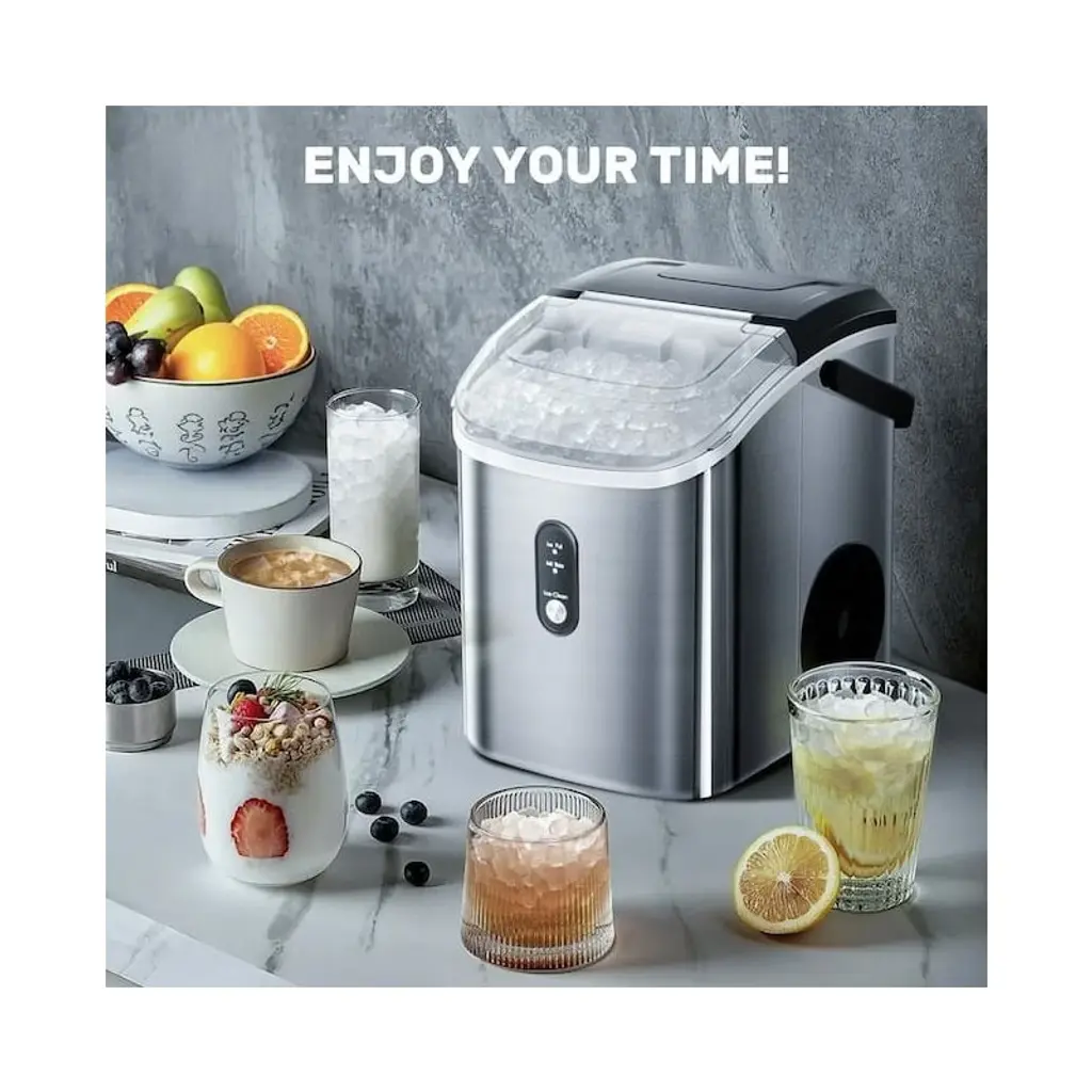 Kismile Nugget Ice Maker 34-lbs. Ice Per Day Countertop Or Portable Pebble Ice Maker( Silver Stainless Steel )