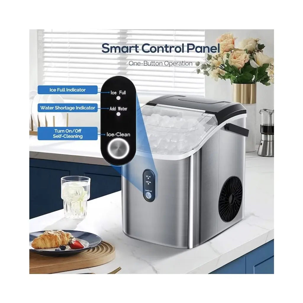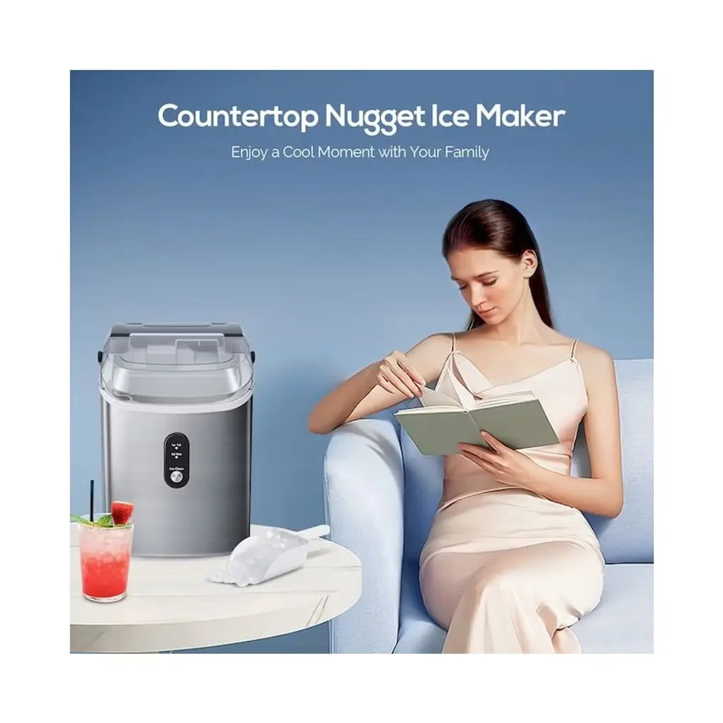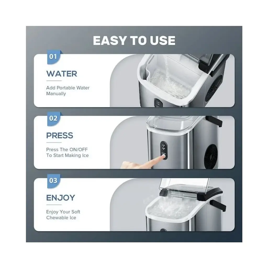 Kismile Nugget Ice Maker 34-lbs. Ice Per Day Countertop Or Portable Pebble Ice Maker( Silver Stainless Steel )