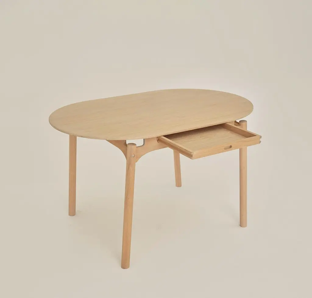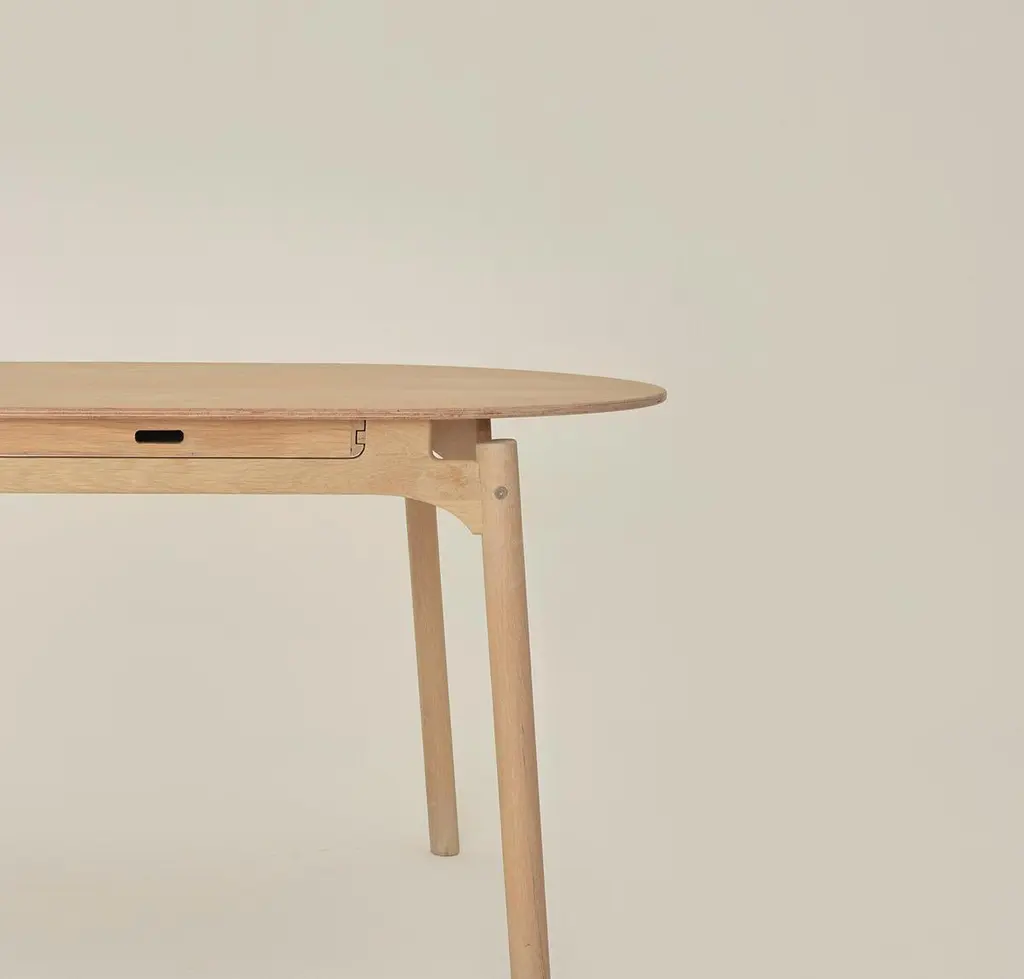 Defined by the sculptural woodwork, Frame Table Elliptical is an expression of a gentle geometry.With the idea of creating a versatile table, it has a utilitarian perspective by offering you an ideal surface for your dinner, yet also for your work.It is a spacious yet lightweight piece. Crafted from oak wood, it defines a sculptural structure with solid round legs and an elliptical table top. Frame Table is flatpack; the parts join each other easily with screws and no need for glue.It presents the beauty of oak wood and structural details in every view. Hence, Frame Table Elliptical can be the generous piece of your contemporary interiors or peaceful outdoors.