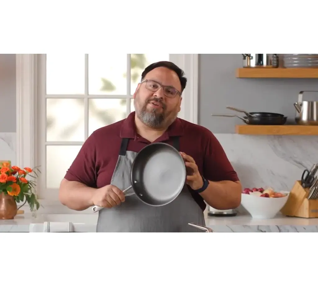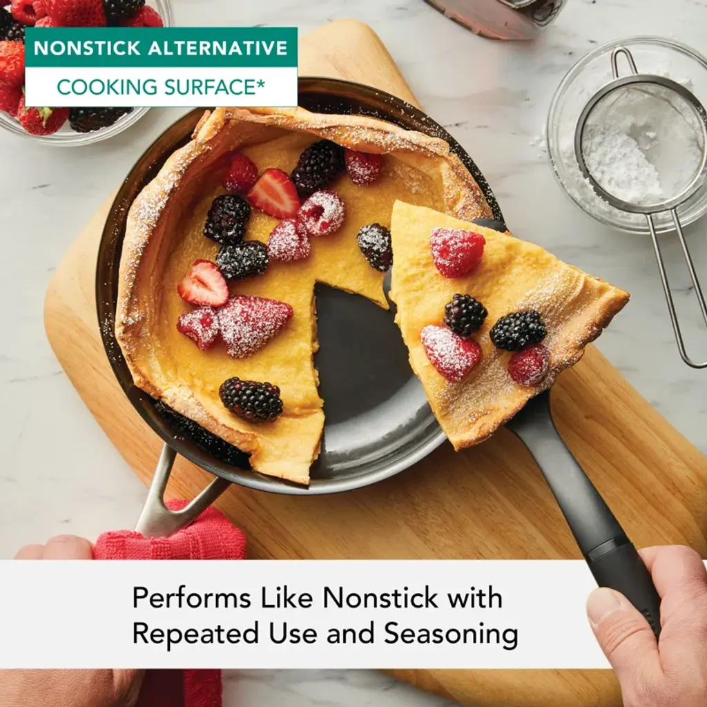 Weeknight dinners have never been easier with KitchenAid® nitro-carbon steel, the ultimate kitchen workhorse. This do-it-all cookware offers the exceptional searing and timeless performance of cast iron, but with lightweight, anti-rust convenience, making it the perfect go-to pan to elevate weeknight meals. Made with innovative nitro heat technology to seal the surface of the pan and lock out moisture, this durable skillet is rust-resistant and 22 percent harder than traditional carbon steel as well as completely metal-utensil safe. Similar to cast iron, carbon steel can also be seasoned to develop a nonstick-like cooking surface over time. Heat safe to 750 degrees F and induction suitable, this pan offers culinary perfection from stove to oven to grill.