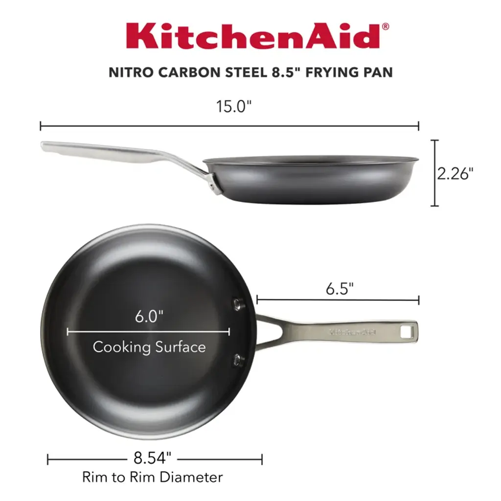 Kitchenaid Nitro Carbon Steel Skillet / Fry Pan, Stainless Steel Handle, Induction Suitable, Gray