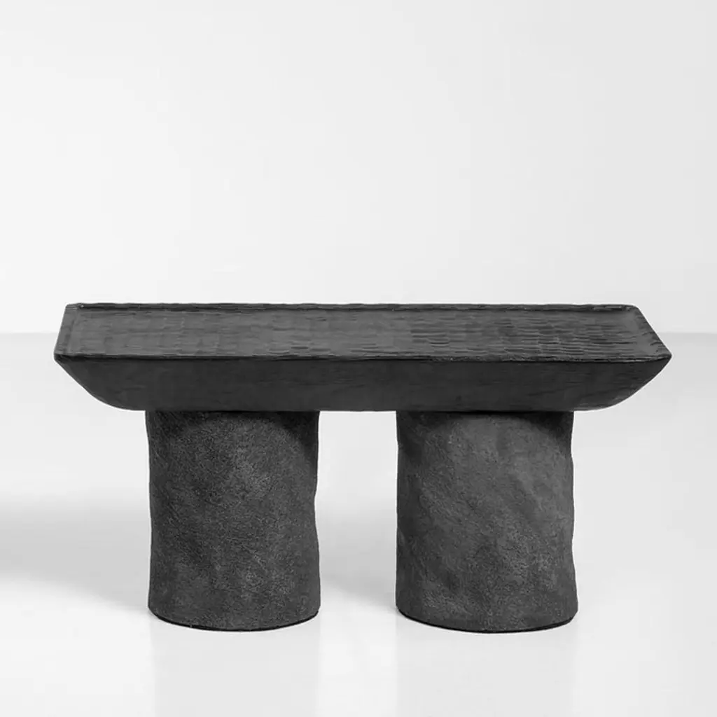 Korotun coffee table by Faina.Design: Victoriya YakushaMaterials: clay, wood.Dimensions: W 75 x D 42 x H 35 cm.Almost carved in stone, minimalist coffee table with sharp outlines has sturdy character. With its authentic features Korotun— is a bold emphasis for a modern interior.In search of new-old design messages, Victoria Yakusha conducted a study of the daily traditions of our ancestors. The times of Trypillia and the Scythian civilization, Slavs household habits, designer studied the forms, materials and craft techniques of those times and brought modern perusal to the traditional things.Awards Industart 2015 Award for PECHYVO cabinetArchiproducts Awards — SHCHEDRYY table nominatedAZ Awards Canada nominated SOLOD cabinet The Interior of the Year Award for ZTISTA chairExhibitions Solo2017Stockholm Furniture Fair: The collection had an individual Stand2018Milan Design Week: presented novelties at Superdesign Show 2018London Design Fair: has presented full collection.Group2015Bologna Design Week: first exhibition for the new Collection.2017Dutch Design Week: SOLOD ?abinet, HRYB coffee-table — participants of the exhibition.2018Paris Design Week: Bandura vase in the "1000 vases" Project by Roberto Bachiocci2019Stockholm Design Week: presented at the two TOP locations — "Fenix Palace" & "Temperament" exhibition by Sahara Widoff.2019Milan Design Week: KOROTUN table, BANDURA & MOTANKA vases featured in Studiopepe installation "Les Arcanistes — Future Un / written".