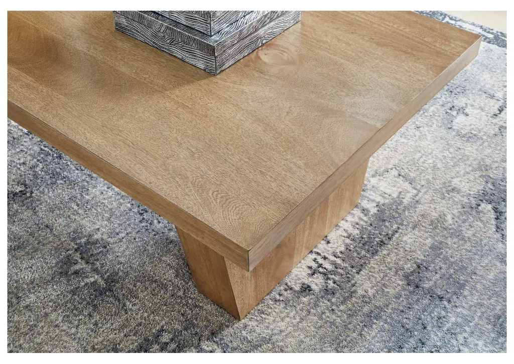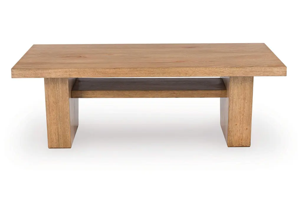 Add exceptional casual appeal to your entertaining and gathering space with the Kristiland coffee table. A light wood-tone finish enhances its natural beauty, while thick, chunky geometry highlights the casually cool design. This table's relaxed feeling is right at home adorned with candles, vases or decorative books. Or coffee. Weight 103.000 lbs. (46.35kgs.)