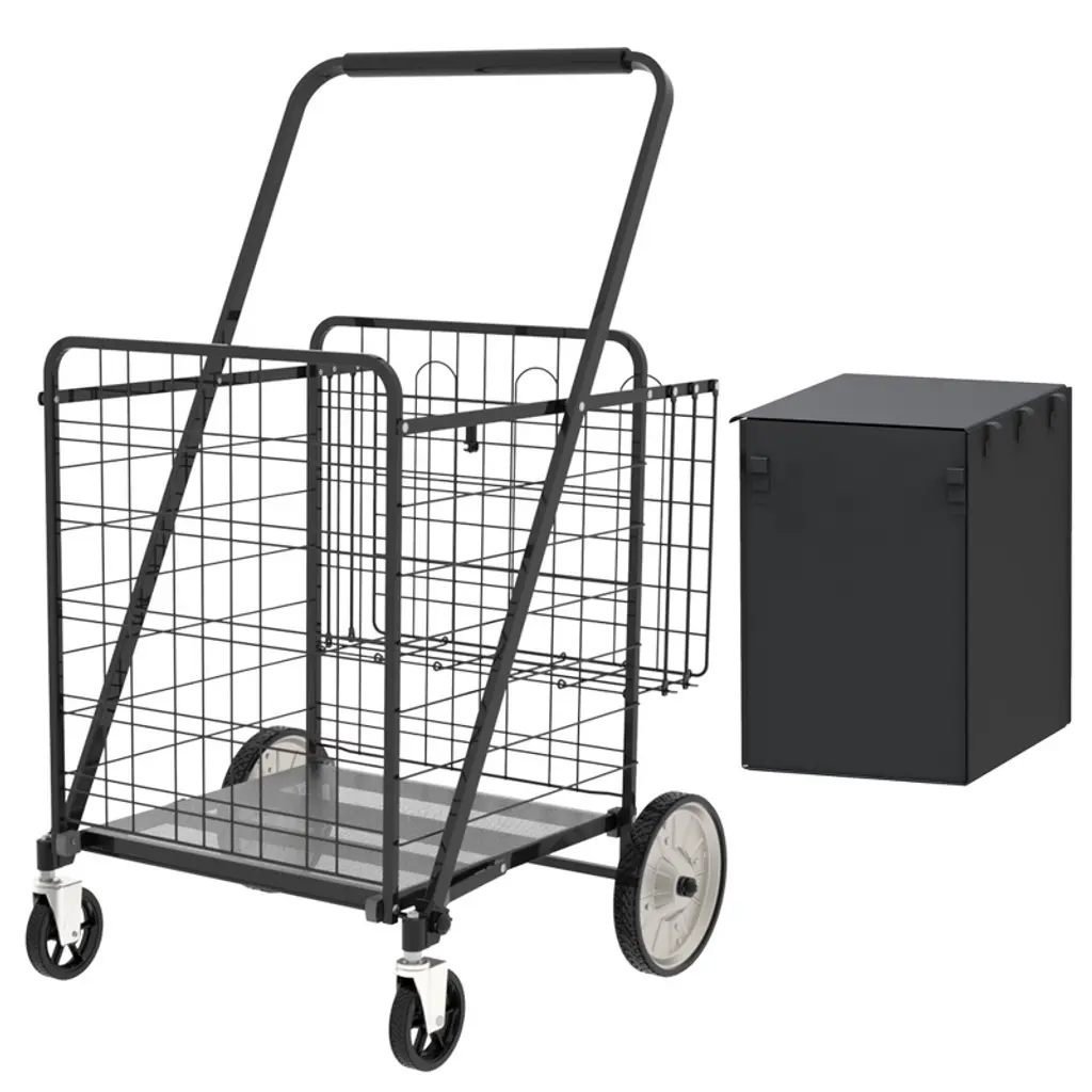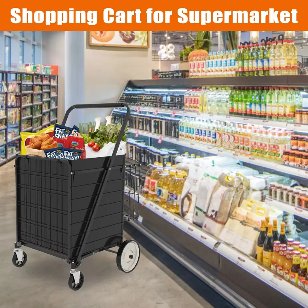 Ktmbdw Large Folding Utility Shopping Cart With Removable Liner ̈C Heavy Duty, 360¡ã Swivel Wheels, Portable For Groceries, Laundry, Black