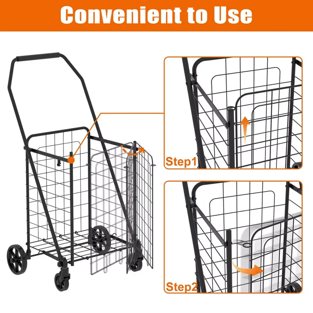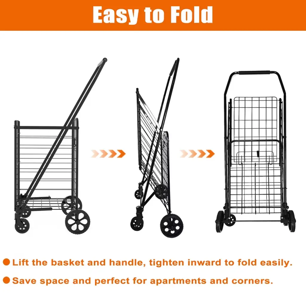 Ktmbdw Utility Shopping Cart Easily Collapsible And Portable To Save Space And Heavy Duty Light Weight Trolley With Rolling Swivel Wheels Black