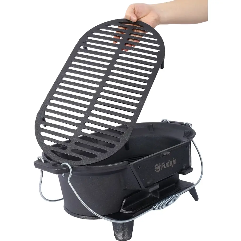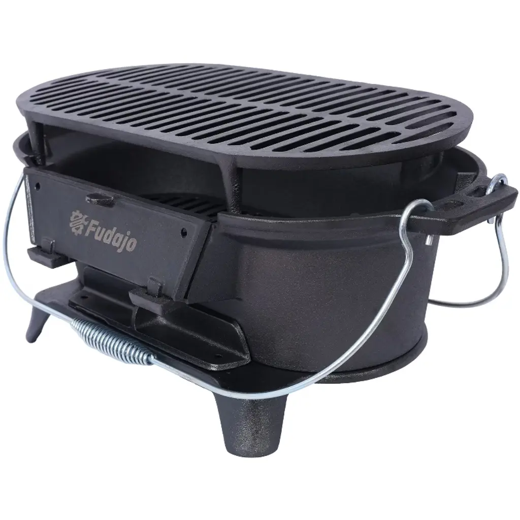 Take your outdoor cooking to the next level with this oval cast iron grill, designed for portability and performance. Built from 100% heavy-duty cast iron with a scratch-resistant enameled coating, this compact tabletop charcoal griddle is perfect for camping, tailgating, backyard barbecues, or even at home. The flat-top design provides a generous surface for searing meats, vegetables, or seafood, while the built-in air vent allows for better temperature control over open flame. Once heated, the cast iron retains high temperatures for consistent cooking results. With integrated carrying handles and easy disassembly, it’s easy to pack up, clean, and store—making it your go-to grill for every outdoor adventure.