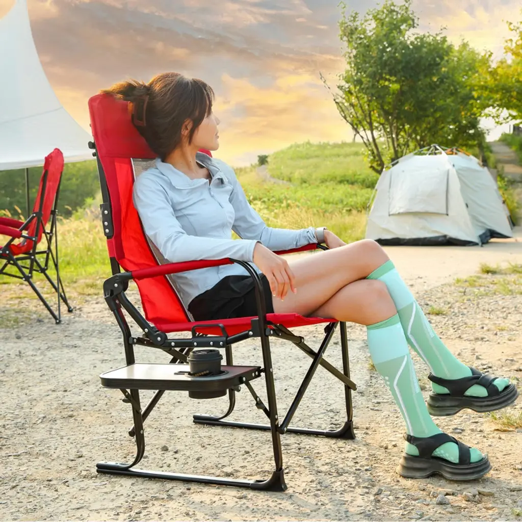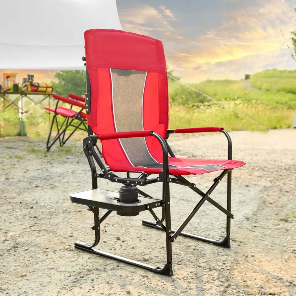 Kwpzqeb Directors Chair, Camping Chairs For Adults, Heavy Duty Side Table With Side Table And Side Pockets, Lawn Chairs For Beach, Lawn - Red