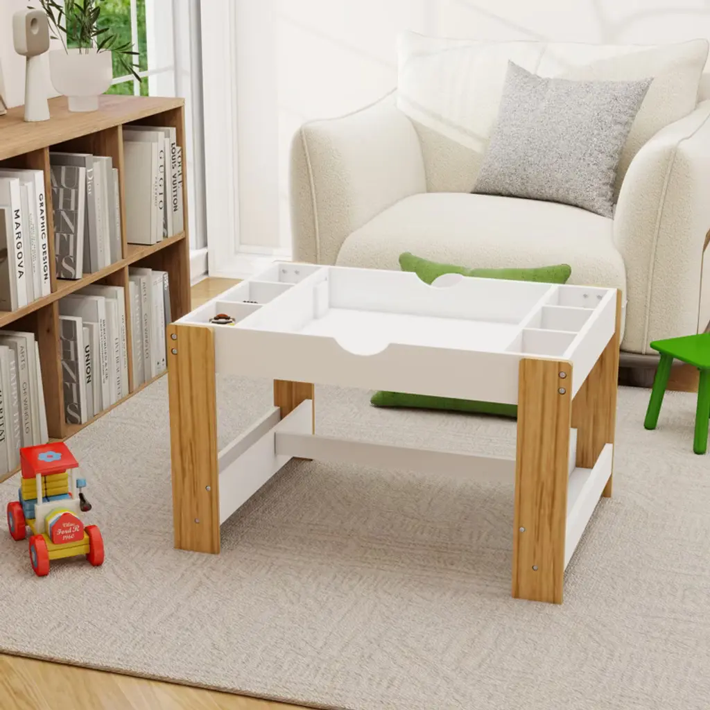 This tabletop features a brick base compatible with LEGO bricks, making it easy for kids to build with it. The other side features a smooth whiteboard for art and crafts. Additionally, the tabletop features 12 removable dividers (excluding the long center divider) for ample storage space that can be easily rearranged to accommodate toys, crafts, and more, keeping your living space clutter-free.