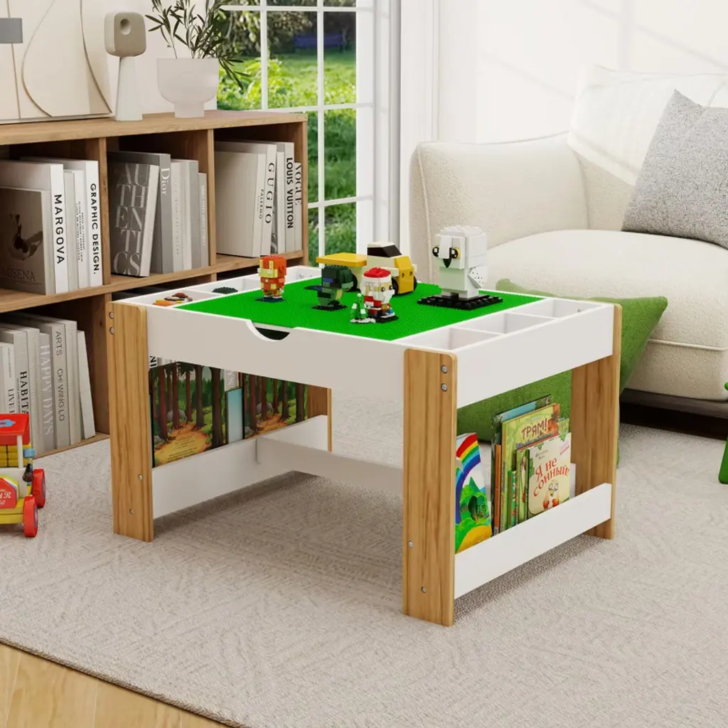 Kwpzqeb Kids 2 In 1 Play Table With 7 Storage Compartments With Lego And Duplo Bricks, Built In Plate Compatible, Modern Activity Learning Table