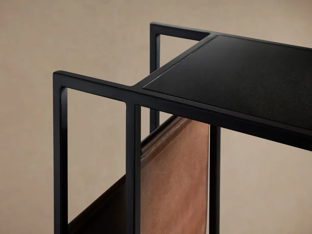 Crafted with intention, the mixed-material styling of our Kyler Collection keeps everyday essentials always close at hand. The relaxed leather sling is made for holding the books and magazines, while the stone tabletop is perfectly sized for beverages, remotes, reading glasses, and more. A sleek, iron frame with a powder-coated finish completes Kyler’s look in clean-lined simplicity.