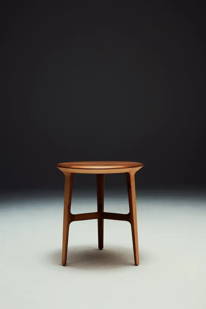 The design for ‘Yakisugi‘ was inspired by the eponymous traditional Japanese tec hnique of charringtimber to protect its surface. The deliberately simple lines of this occasional table contrast elegantlywith the combination of woods oak and walnut from which it is crafted. With a play on light andshade, indoor and outdoor, the c oloured streaks of the legs rise in contrasting positions, eventuallyblending into the crowning table top, highlighting the design’s silhouette.A feat of artisanal craftsmanship celebrating the beauty of the material.Dimensions:Ø450 x H500 mmFinishessolid Canaletto walnut and oak.