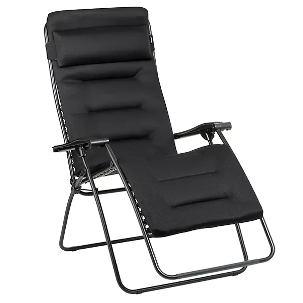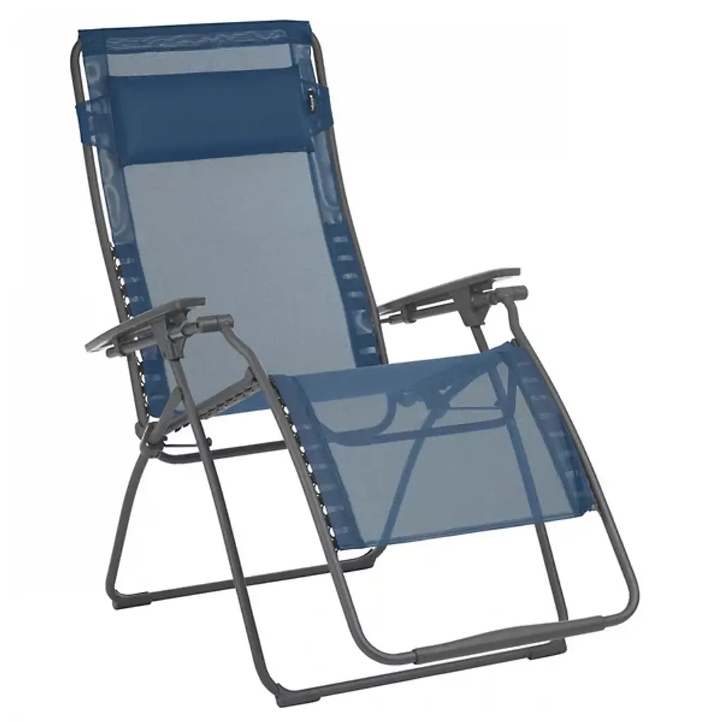 Relax like never before with the Lafuma Futura XL Zero Gravity Outdoor Steel Framed Lawn Recliner Chair. Whether you're lounging by the poolside, basking in the sun at the beach, or enjoying a serene afternoon in your backyard, this recliner chair is your ultimate companion for pure relaxation. This folding chair is the ideal companion for all your downtime moments with its multiple resting positions, including the zero gravity position (with the legs slightly above the heart), which is the optimum relaxation position. Its fixed armrests with stabilizers are very useful as they allow pressure to be applied by the hands to get up effortlessly and can function as a lawn, camping, and beach chair. The patented clip suspension system features elastomer clips that link the fabric to the tubing for improved ergonomics, firmer comfort, optimum back support, ease of clipping and unclipping, and a long lifespan. Its Batyline fabric is 100 percent practical and stylish and is specially designed for outdoor furniture. This material combines a good resistance to UV exposure, ripping, and abrasion and dries quickly. Whether you're seeking solace in the midst of a bustling week or embracing the weekend with open arms, let the Lafuma Futura XL Zero Gravity Outdoor Steel Framed Lawn Recliner Chair be your gateway to a realm of relaxation, where time stands still, worries fade away, and every moment is infused with pure delight.