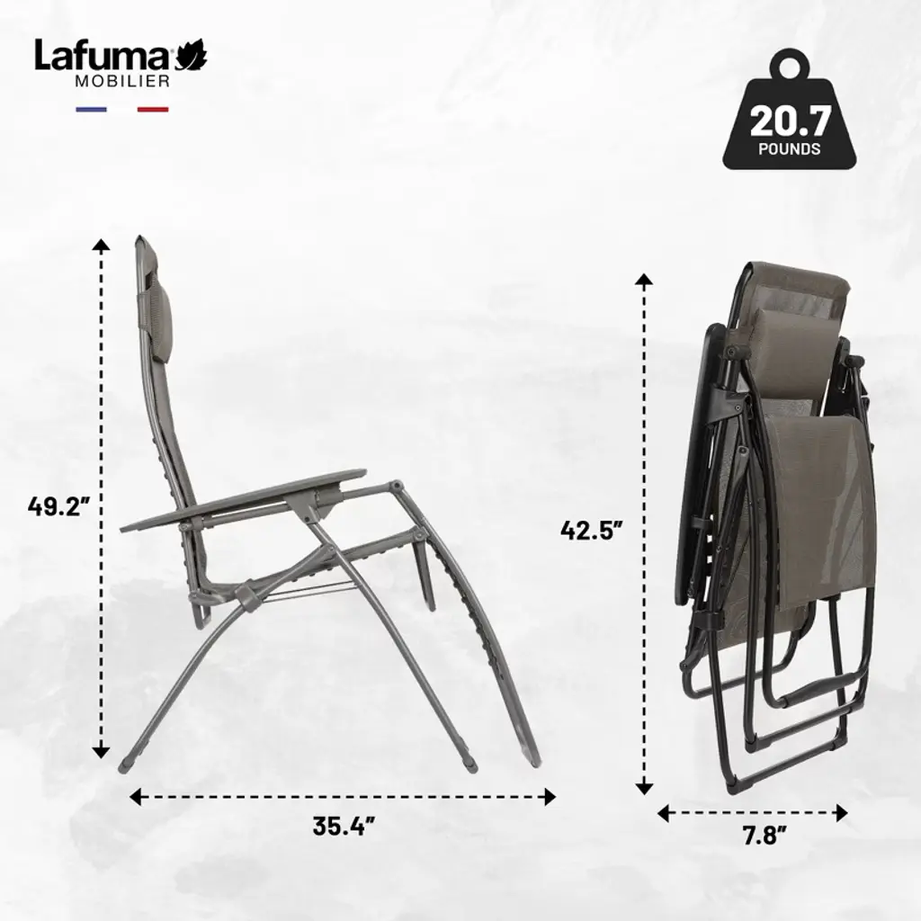 Lafuma Futura Xl Zero Gravity Portable Ergonomic Outdoor Steel Framed Lawn Patio Recliner Folding Lounge Chair With Headrest Cushion, Graphite