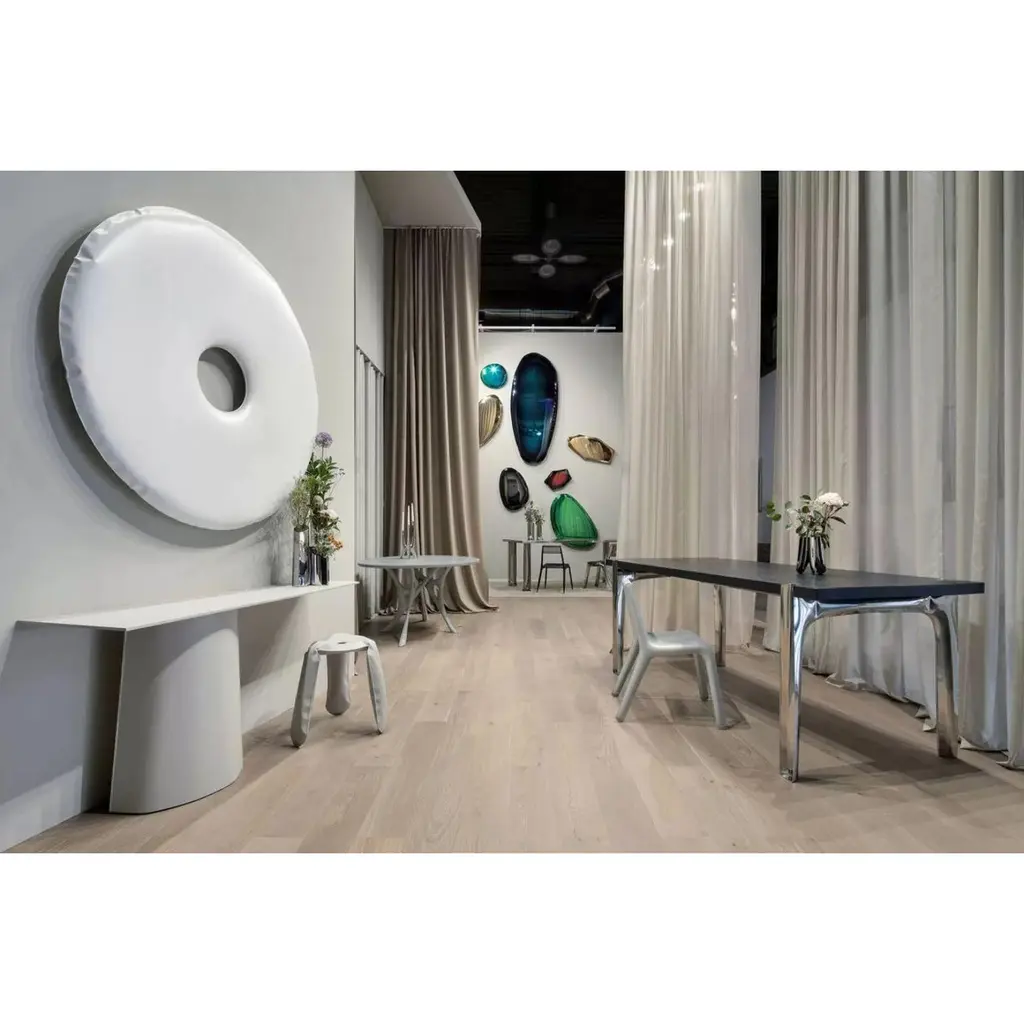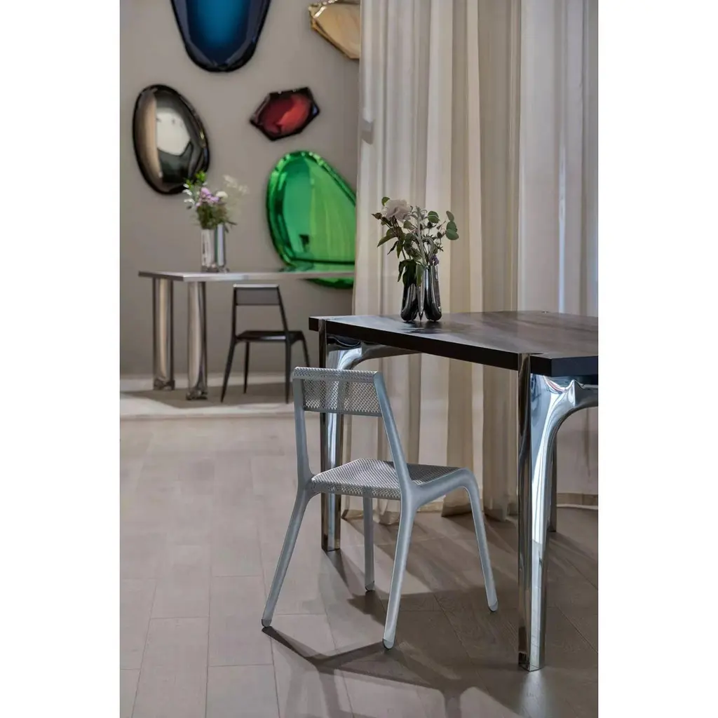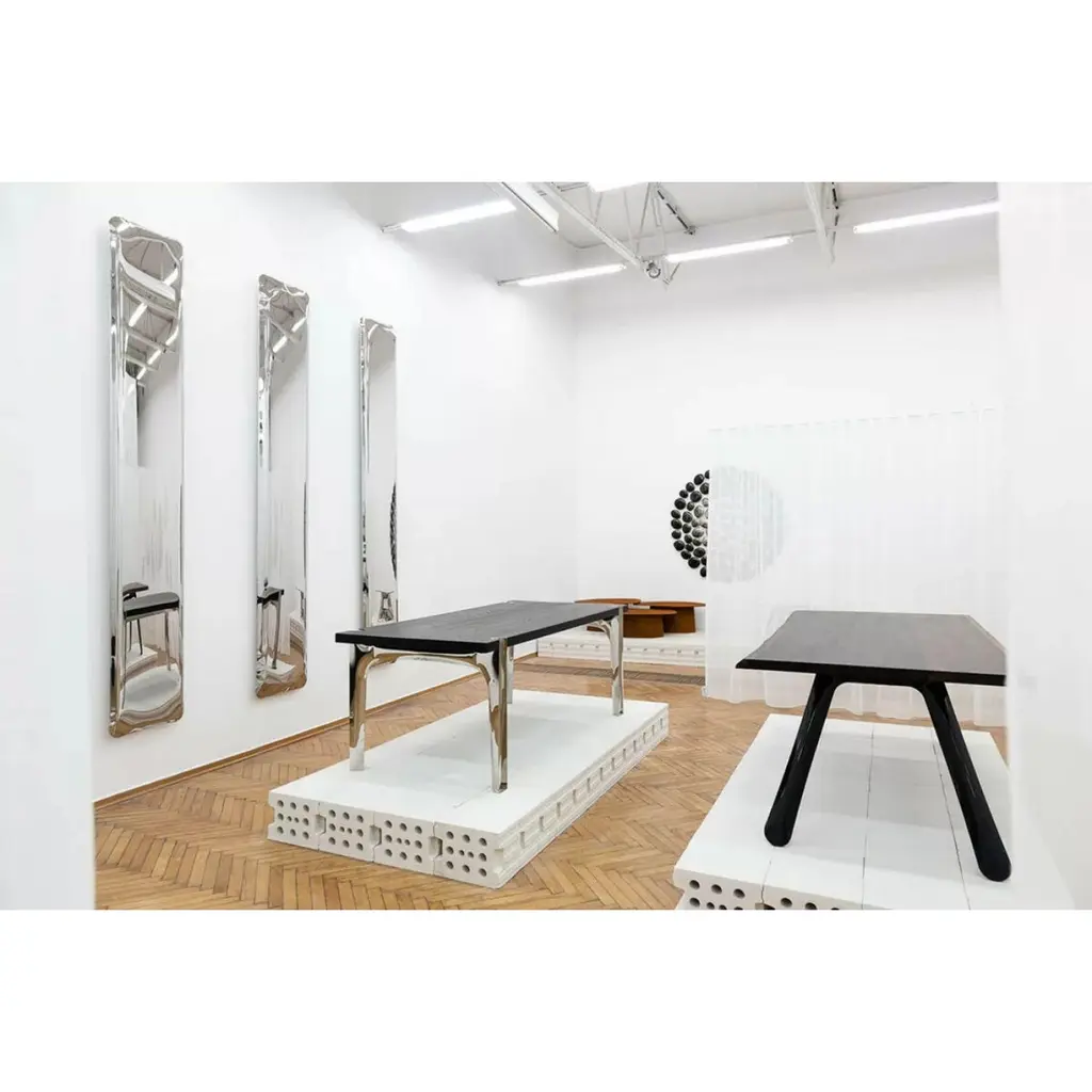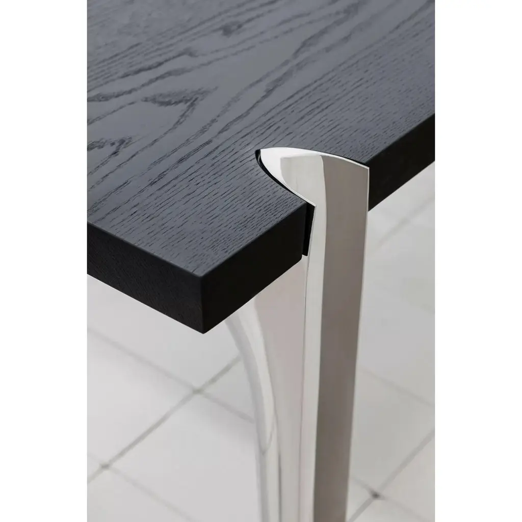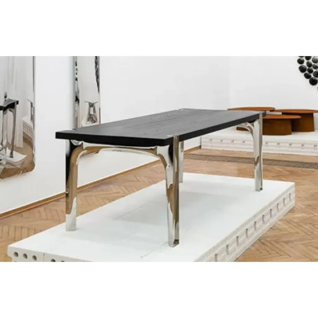Lagom Oak Table by ZietaDimensions: D 95 x W 200 x H 75 cm.Materials: Polished Stainless Steel Legs and Bog Oak top.Tailor-made dialogueJoining, separating and searching for balance, an intriguing juxtaposition of the durability and plasticity of metal with the natural warmth of wood. LAGOM is a story of optimization, material connections, and exploring the potential of steel.Zietas main goal is to deliver uniqueness and customization in design and constructions while keeping the production, transport and warehousing innovatively efficient.This is how they imagine the future world: Light, durable structures of customized applications produced on demand out of one-of-a-kind parts, yet efficiently.They use computer controlled production process. Customized pattern, customized form, customized function, one-of-a-kind product and outstanding precision are what they deliver.You will find all of this philosophy reflected in the products. They research, they discover new possibilities, they play with forms and they deliver a beautiful, innovative, surprising outcome to people who love design and who care about the design development.They believe their work is a valuable contribution to the world of design not only by the unique beauty of the forms but most of all by opening ultra-innovative opportunities of forming and new paths for the world of future.
