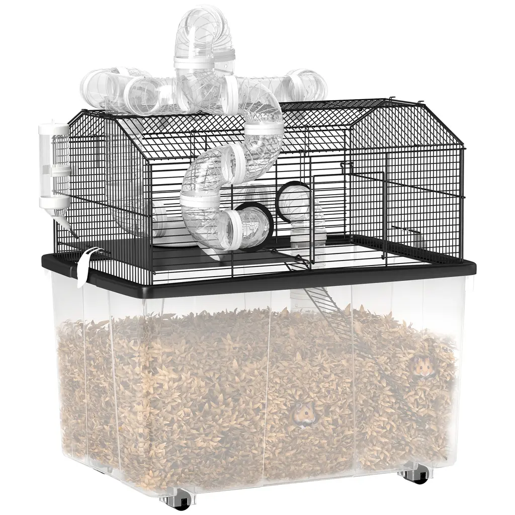 Multi-Level Fun and Exploration:This extra-large, 3-tier hamster cage is designed to meet all your pet’s needs, offering separate zones for playing, eating, and resting. Your furry friend can climb ramps, explore two platforms, and enjoy the exercise wheel, food bowl, and water bottle included.Durable and Long-Lasting Construction:Featuring top ventilation holes for excellent airflow, this gerbil cage ensures your pet stays healthy and comfortable. The robust steel top combined with a tempered glass base resists biting and scratching, allowing you to add bedding materials like paper or wood chips for a cozy environment.Safe and Comfortable Design:Measuring 22.83" L x 15" W x 21.25" H, the cage includes shock-absorbing foot pads for added stability. Made from washable materials, it’s easy to clean and maintain, providing a hassle-free experience for pet owners.Clear and Captivating View:Equipped with high-transparency tempered glass panels and a large viewing window, this dwarf hamster cage offers a 360-degree perspective, letting you enjoy watching your pet’s playful behavior from all angles.Simple and Quick Assembly:With straightforward, step-by-step instructions included, assembling this small animal cage is quick and easy, allowing you to spend more time bonding with your pet instead of setting up.
