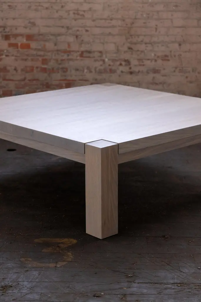 This large modern coffee parsons style table in rustic oak with grey stain was crafted to modern lines with traditional joinery. The extra large size, 48 x 48, can work in a mountain home or beach home in a large space with high ceilings or big windows. Use this table in a living room to make memories to last for generations. Beautiful Alabama urban hardwood, a unique stain and a clear urethane means it stands out among the furnishings in your home or office. Expert craftsmanship means it will become tomorrow's heirloom. A field-to-studio company, Alabama Sawyer repurposes the finest wood species, reclaimed from our local urban forests, to create one of a kind furniture pieces and accessories for the home or business. The effect is rustic, yet refined, warm and modern. Other made to order sizes are available. This console table is ready to ship today.