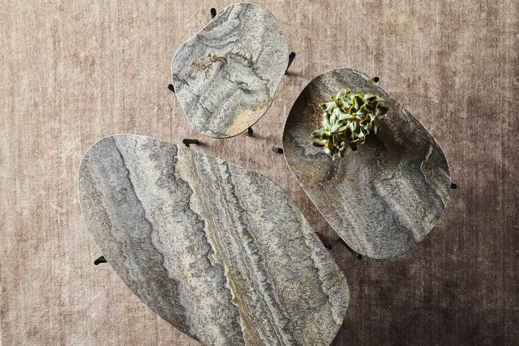 Grey melange la terra large occasional table by agnes morguet materials: metal, grey melange travertine dimensions: d 54 x w 95 x h 36 cm the founders, mia and torben koed, decided to put their 30 years of experience into a new project. It was time for a change and a new challenge. The challenge was to build an ambitious design brand from the ground up with high-quality materials and great attention to the little details. With a drive to create new originals, the woud collection is founded upon the idea to look ahead instead of looking back and share the love for honest design. Therefore, we are eager to discover and develop new ideas whether it being in form, function or choice of material.