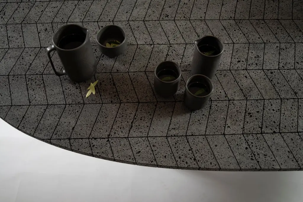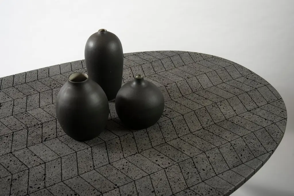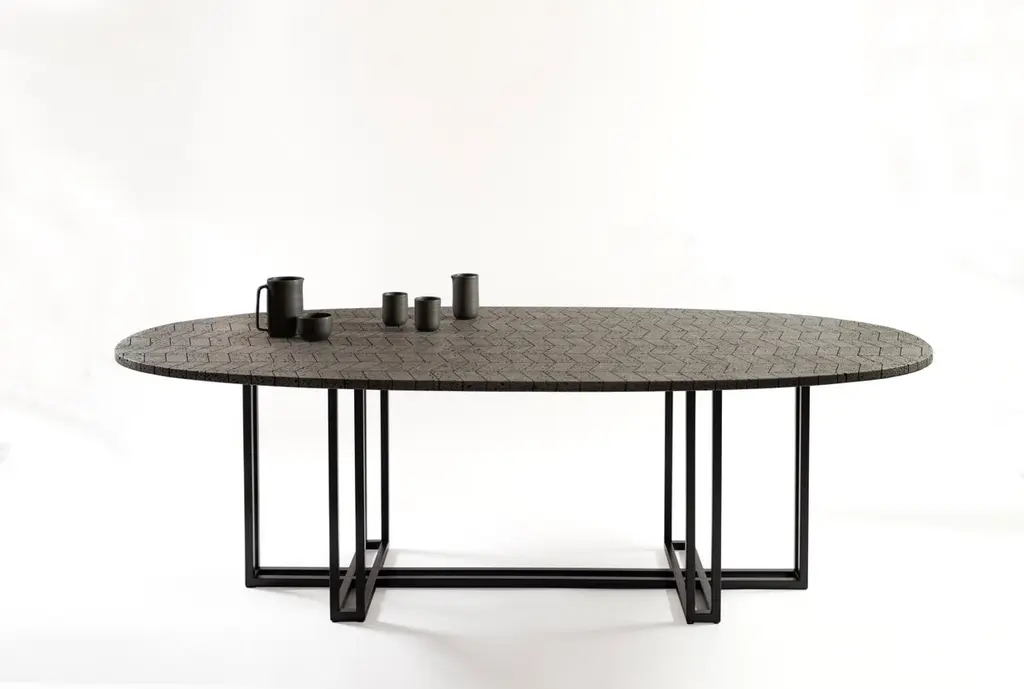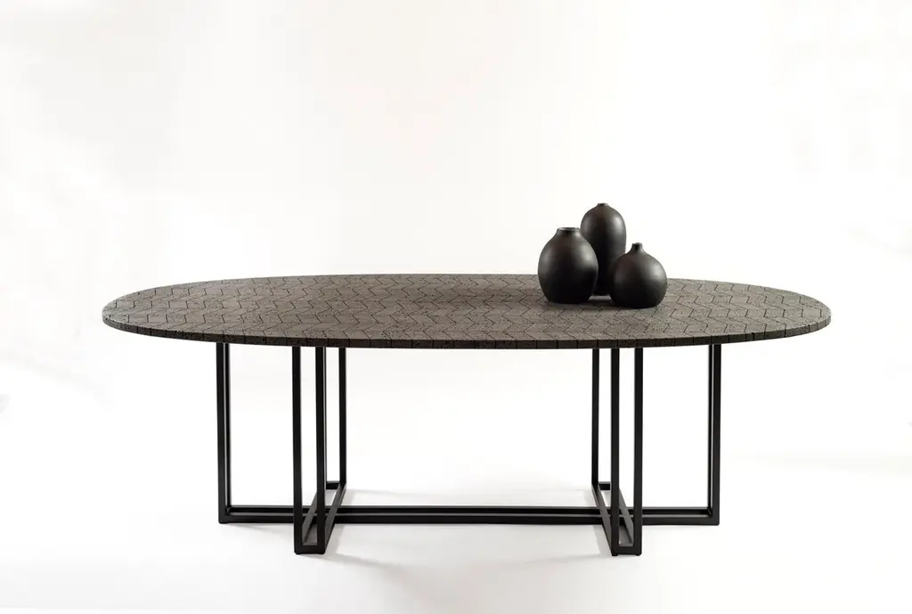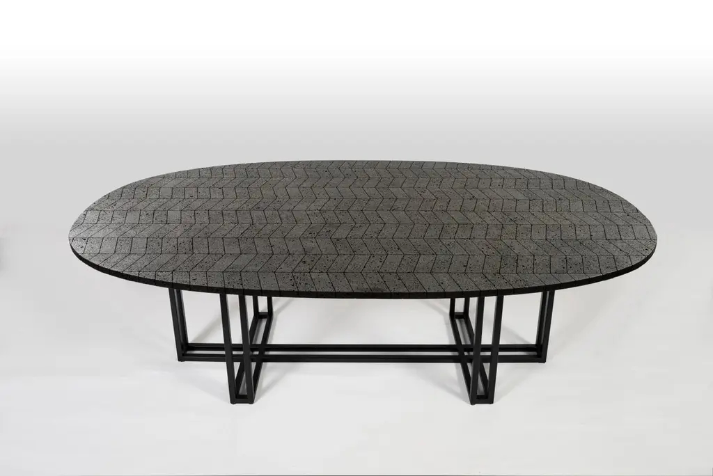 Lava Oval Table, Volcanic Stone And Stainless Steel 2.4m