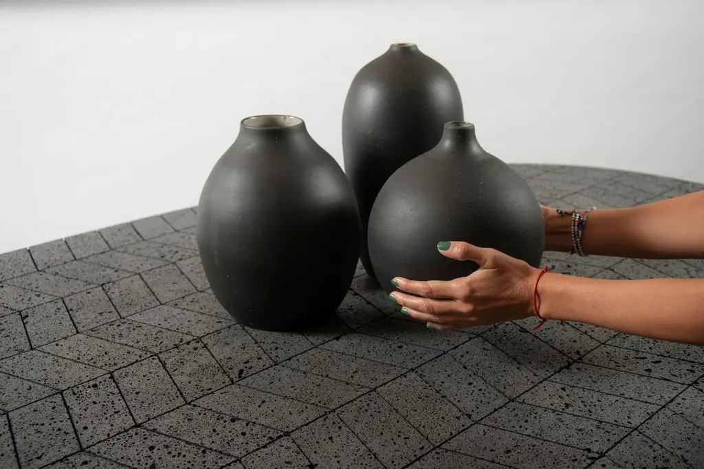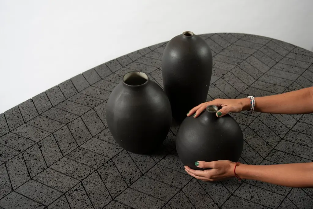 The vast volcanic stone stretches across an oval top featuring a composition of handcut, polished and mounted pieces. The black stainless steel base provides character and strength. This Lava table is ideal for adding its energetic feel to both indoor and outdoor settings.MaterialVolcanic Stone and Stainless SteelMeasurements240 cm x 240 cm x 75 cm