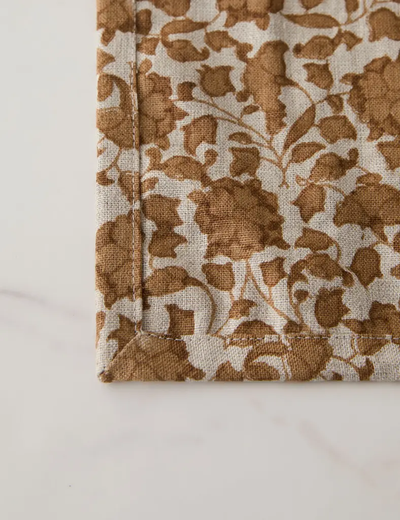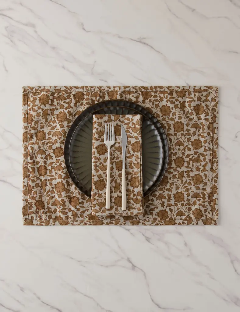 Timeless artisanry meets the fresh touch of linen in these handcrafted napkins and placemats. These table linens feature a charming block print floral motif, to inspire effortless sophistication at your table.