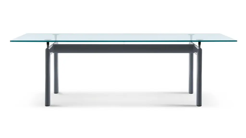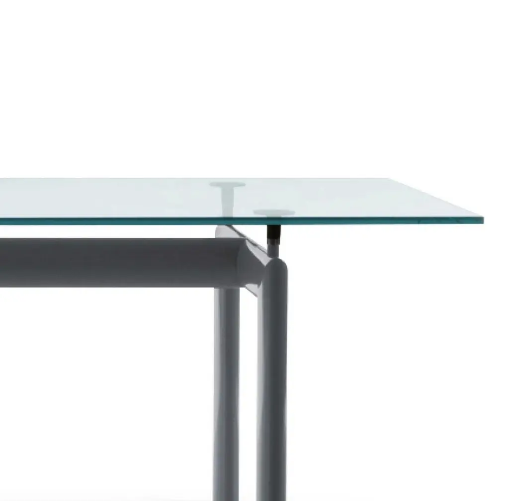 Le Corbusier 6 Table Tube d'Avion For CassinaExpression of the lengthy research conducted by Cassina on the masterpieces of the great masters, the Table tube d’avion design table is one of the first studio models introduced by Le Corbusier, Pierre Jeanneret and Charlotte Perriand at the Salon D’Automne in Paris in 1929.The uniqueness of this made in Italy piece lies in the distinction between the support piece and the piece being supported, in other words, between the top and the base; the latter designed with reference to the oval profiles used in the aeronautical sector to separate the wings of biplanes.The current version of the iconic rectangular table has a steel base painted in the Le Corbusier palette of colours, while the top comes in clear glass, textured glass, or in luxurious Bianco Carrara or Nero Marquinia marble.TOPClear, textured glass, marble.BASEPainted steel.PAINTColors from the Le Corbusier palette.The core concept for the Table tube d’avion table, introduced in 1929 at the Salon d’Automne [Autumn Salon], lies in the distinction between the support piece and the piece being supported; in other words, between the base and the top. The separation of the two parts is highlighted by the four intermediate supports that serve both as level adjusters and as spacers between the mass of the support and the slender lines of the top. Specifically, the base was designed in 1928, taking its cue from the oval profiles used in the aeronautical sector to separate the wings of biplanes. The current model has a steel base painted in the Le Corbusier palette of colours, while the top comes in clear glass, textured glass, or in luxurious Bianco Carrara or Nero Marquinia marble.Important information regarding images of products:Please note that some of the images show other colors and variations of the model, these images are only to present interior design proposals. The item that is selling is on the first image.Important information regarding color(s) of products:Actual colors may vary. This is due to the fact that every computer monitor, laptop, tablet and phone screen has a different capability to display colors and that everyone sees these colors differently. We try to edit our photos to show all of our products as life-like as possible, but please understand the actual color may vary slightly from your monitoAbout The Designer: In 1922, Le Corbusier began working in the new rue de Sèvres, Paris, atelier with his cousin Pierre Jeanneret with whom he shared research projects and design criteria in a profound and life-long professional relationship.In October 1927, the pair decided to draw on the contribution of a young architect who had already begun to establish a reputation on the architectural scene of the time: Charlotte Perriand. Their collaboration lasted through to 1937 and was extremely fruitful, especially in the field of furniture design. The partnership was highly significant, both in terms of the cultural weight of their achievements and their professional successes.It was together with Charlotte Perriand that the pair tackled the innovative project for “l’équipement d'intérieur de l’habitation”. The resulting designs were of great intellectual value and considerable commercial success. Thanks to Cassina’s ongoing production, there is continued interest in the conceptual contents of the work and the level of quality attained.Due to these characteristics, each item in the collection is eagerly awaited. About The Manufacturer:Established in 1927 by Cesare and Umberto Cassina in Meda, Italy, Cassina launched industrial design in Italy in the 1950s, based on a totally innovative approach that marked the transition from artisan production to mass production. With a mindset focused on research and innovation, Cassina combines technology and long-standing artisan craftsmanship. Memory, research, innovation. Cassina blends traditional skills and superior productivity, meticulous attention to detail and passion, uniqueness and experimentation, wellbeing and sustainability. Today, the company continues to address new lifestyles with the creation of complete, harmonious interior decor solutions that embody the best contemporary design for all areas of the home.