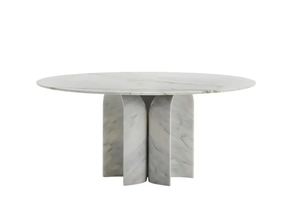 LE CUPOLE is a round marble table, a perfect synthesis of material and form.This table is a tribute to geometric purity and sculptural elegance. A piece with a strong visual impact that translates the power of the material into an act of absolute balance.The base, made of three sculpted marble domes, supports the tabletop with architectural rigor, creating a dialogue between stability and visual lightness.The curved surfaces and soft lines of the domes amplify the sense of symmetry and dynamism, while the attention to detail is revealed in the rounded shapes and brass inserts that embellish the composition.The calibrated play of proportions enhances the contrast between the material solidity of the stone and the simplicity of the design, elevating the harmony between solid and void, structure and surface. Available in Calacatta Oro and Nero Marquinia marble.