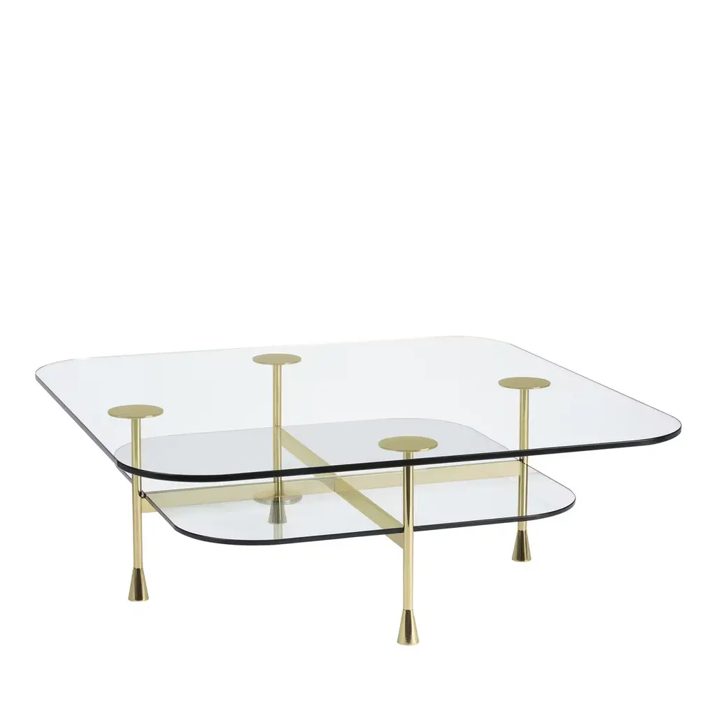 LEGS - Coffee tableTop variants:- Round, rectangular or square- Crystal or Crystal and Marble (Carrara White, Emperador Dark, Sahara Noir or Calacatta Gold).Structure variants:- Polished, satin or burnished brass.The designer imagines a turning point in the use of such a precious finishes such as polished brass: from the idea of almost a unique object in its perfect craftsmanship, to the system to be built starting from the base.A column made of brass whose different diameters define base and capital, just as the columns of classic architecture.The column multiplies to infinity, is interrupted and then resumed to hold glass tops, wood or marble and configure even angular shelves, tables, small tables, displays and consoles.A landscape of almost infinite possibilities that designers and end users can chose from to organize the space both in domestic and contract situations, maintaining aesthetic uniformity in the name of a more refined elegance.